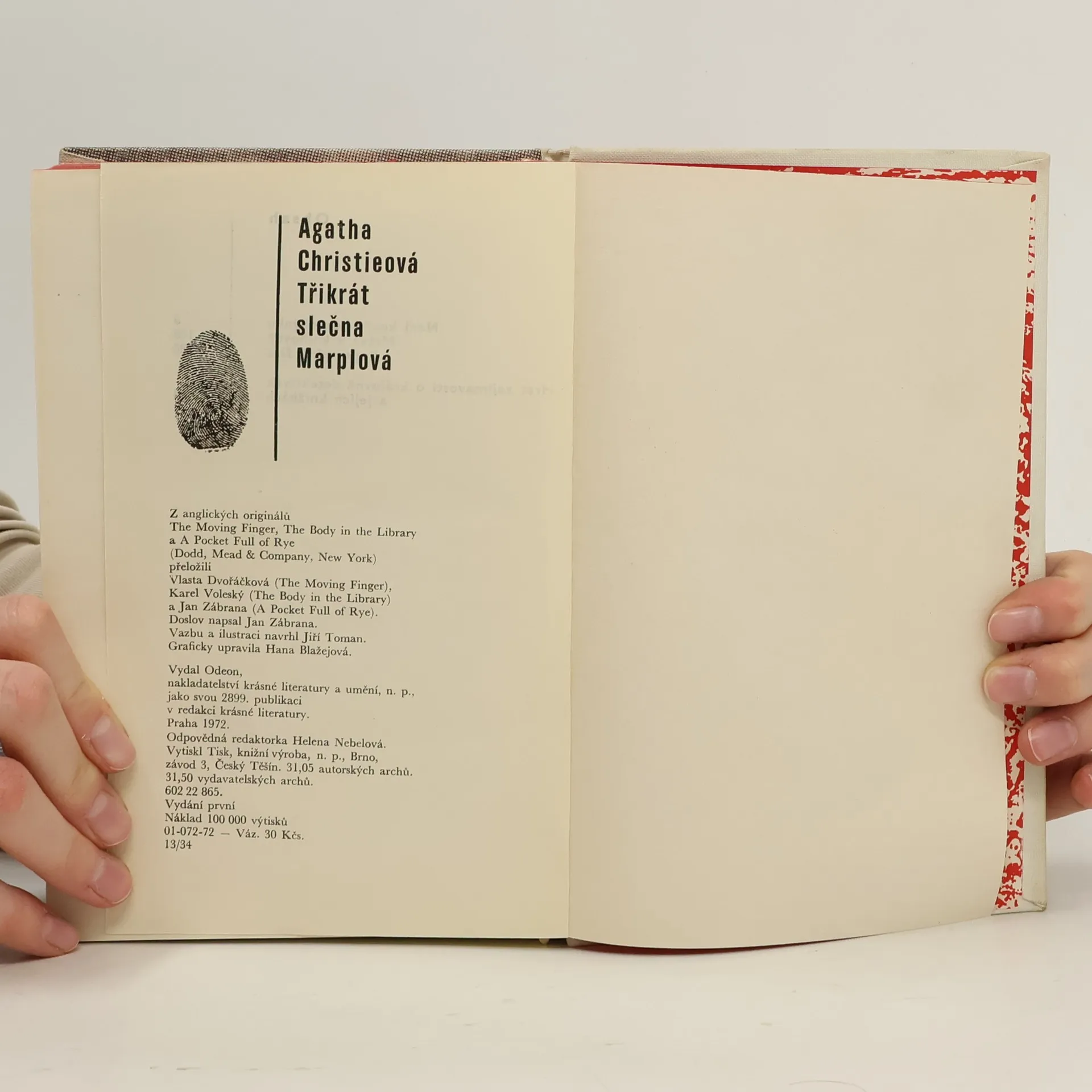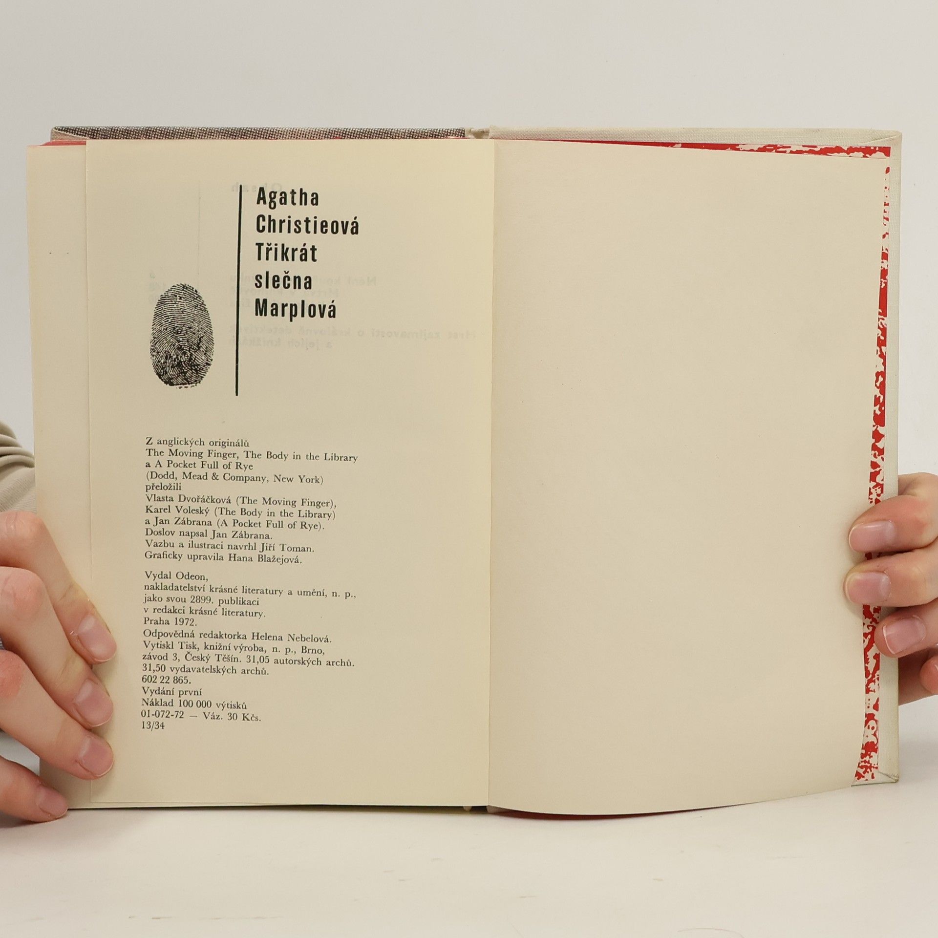Výbor tří detektivních románů se slečnou Marplovou: Není kouře bez ohýnku, Mrtvá v knihovně a Kapsa plná žita. První vydání.