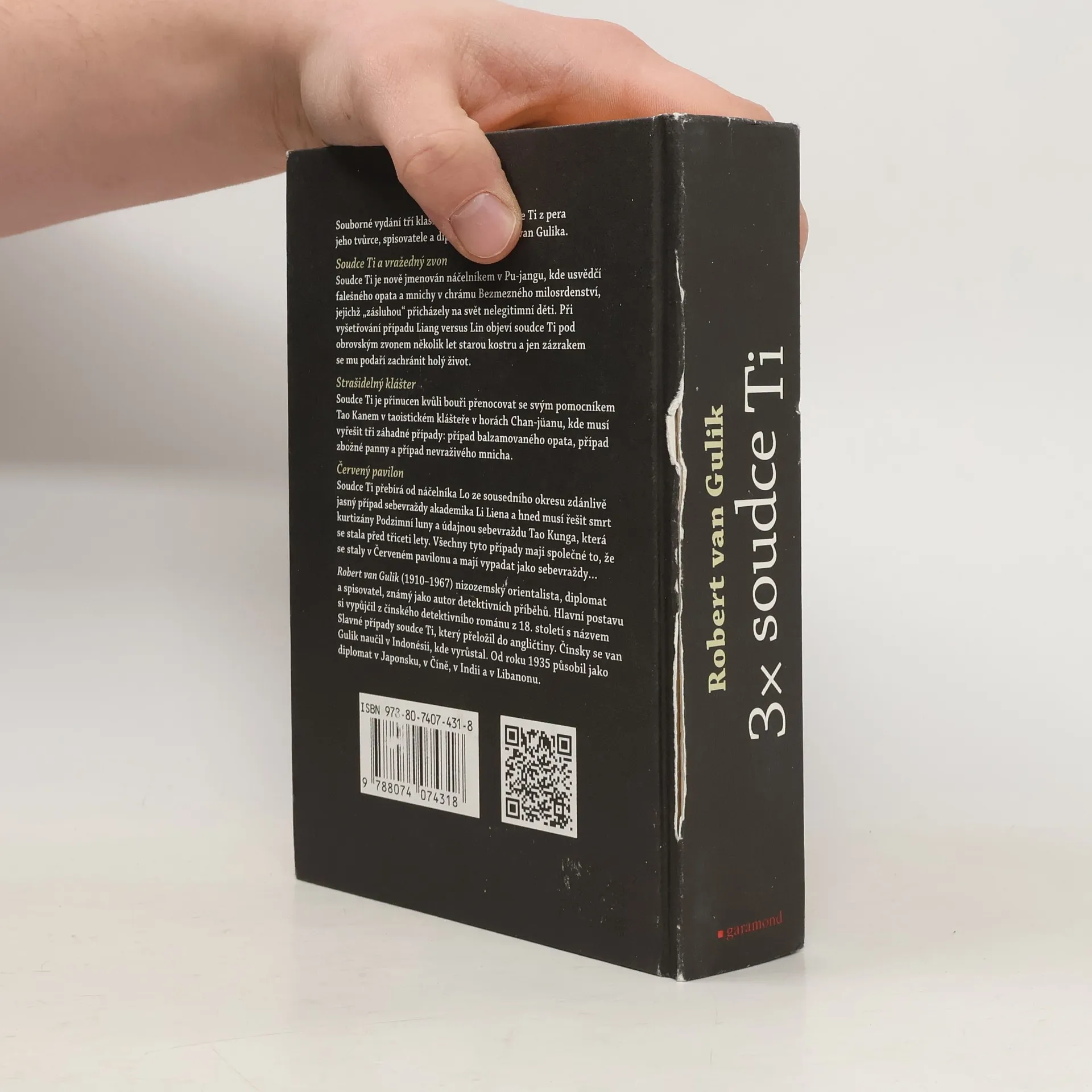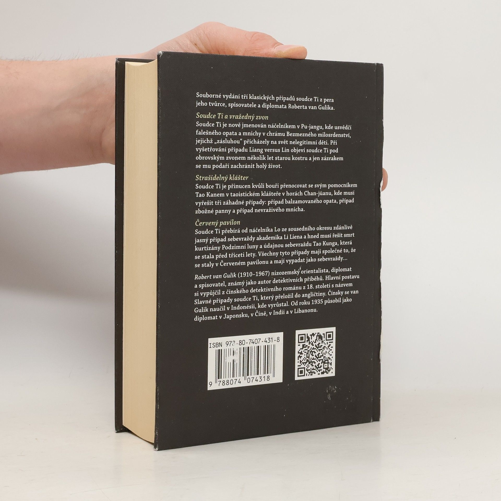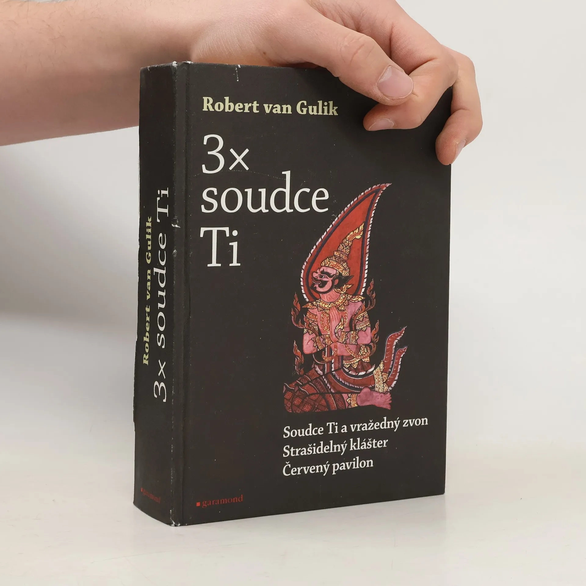Souborné vydání tří klasických případů soudce Ti z pera jeho tvůrce, holandského spisovatele a diplomata Roberta van Gulika. 1. SOUDCE TI A VRAŽEDNÝ ZVON 2. STRAŠIDELNÝ KLÁŠTER 3. ČERVENÝ PAVILON Soudce Ti a vražedný zvon: Soudce Ti je nově jmenován náčelníkem v Pu-jangu, kde usvědčí falešného opata a mnichy v chrámu Bezmezného milosrdenství, jejichž „zásluhou“ přicházely na svět nelegitimní děti. Při vyšetřování případu Liang versus Lin objeví soudce Ti pod obrovským zvonem několik let starou kostru a jen zázrakem se mu podaří zachránit holý život. Strašidelný klášter: Soudce Ti je přinucen kvůli bouři přenocovat se svým pomocníkem Tao Kanem v taoistickém klášteře v horách Chan-jüanu, kde musí vyřešit tři záhadné případy: případ balzamovaného opata, případ zbožné panny a případ nevraživého mnicha. Červený pavilon: Soudce Ti přebírá od náčelníka Lo ze sousedního okresu zdánlivě jasný případ sebevraždy akademika Li Liena a hned musí řešit smrt kurtizány Podzimní luny a údajnou sebevraždu Tao Kunga, která se stala před třiceti lety. Všechny tyto případy mají společné to, že se staly v Červeném pavilonu a mají vypadat jako sebevraždy…