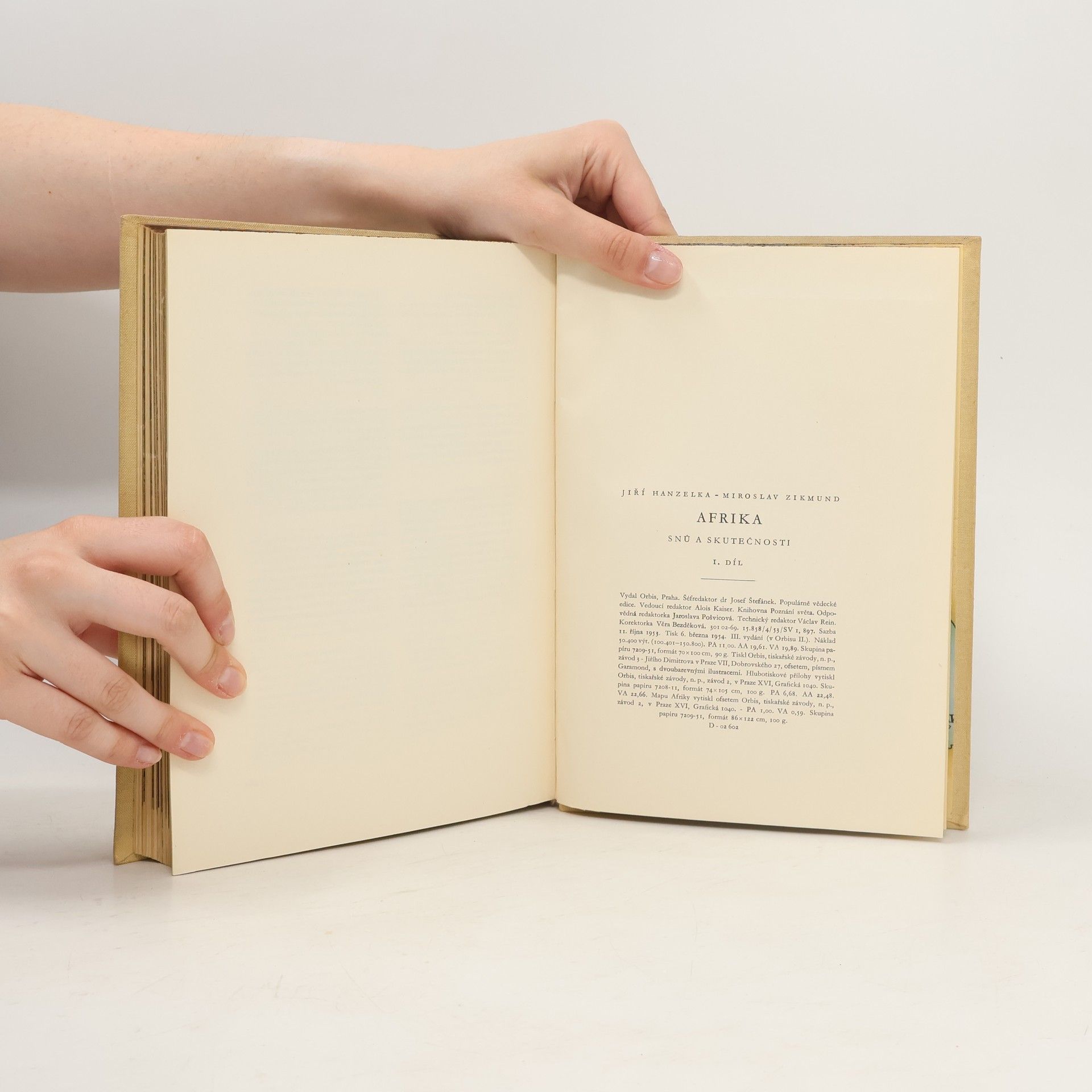 Jiří Hanzelka a Miroslav Zikmund nás seznamují s Afrikou dneška, zbavenou ilusí a vysněných představ. Ukazují čtenáři i její historii, její přírodní krásy a zajímavosti. 1. svazek cestopisného díla o Africe líčí dojmy a poznatky autorů při jejich cestě automobilem z Prahy přes Bavory, Švýcarsko a jižní Francii a pak z Casablancy po severoafrickém pobřeží, Marokem, Alžírem, Tunisem, Tripolskem, Cyrenaikou do Alexandrie a Káhiry, Port Saidu, podél Nilu do Sudanu a Eritreje. Všímají si nejen všedního života domorodého obyvatelstva a exotických zvláštností, ale též politických poměrů koloniální praxe imperialistických mocností, vyprávějí o vykořisťování afrického obyvatelstva i o osvobozenském hnutí koloniálních národů. 160 s. obr. příl., 1 barevná mapa 3. vydání