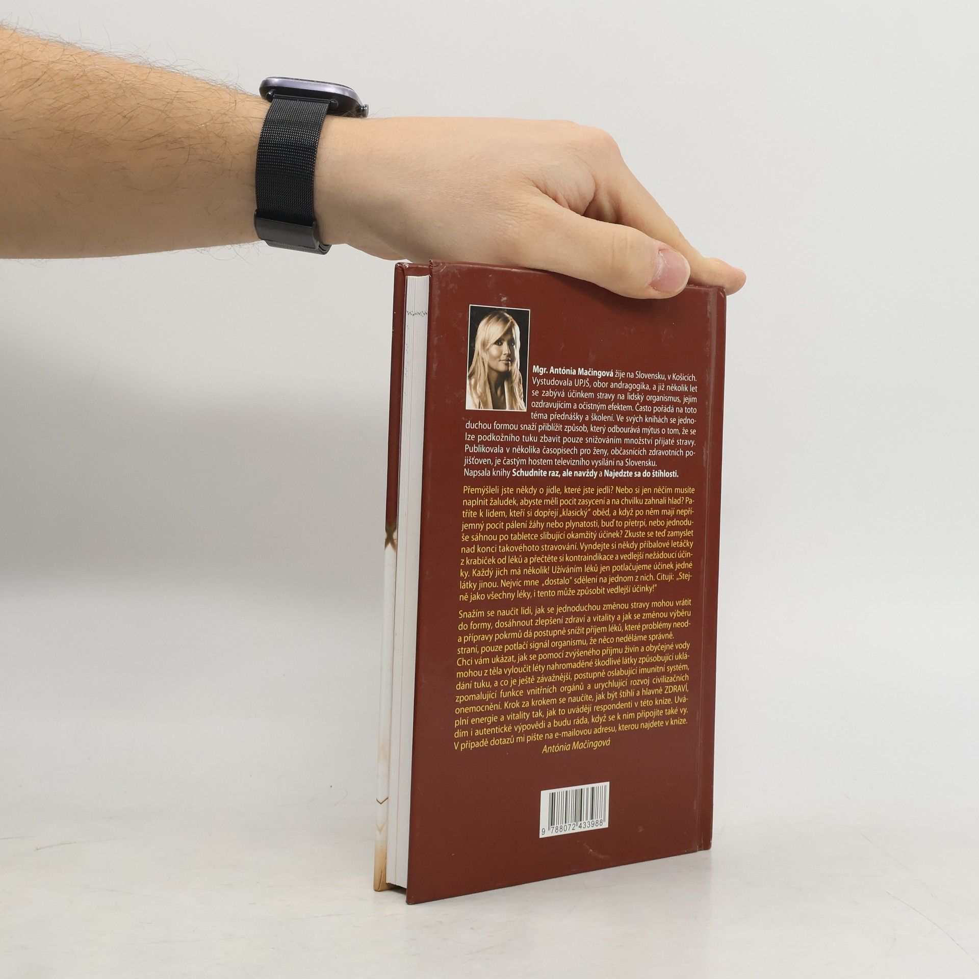 Kniha Zhubněte jednou provždy obsahuje unikátní 28 denní detoxikační program, po němž se budete cítit naplněni životní energií, upraví se zdravotní problémy a výrazně poklesne vaše hmotnost, aniž byste se museli trápit hlady. Naopak – čím víc doporučené stravy zkonzumujete, tím rychleji odbouráte podkožní tuk – pokud budete dodržovat potřebný pitný režim! Součástí knihy je navíc i dělení potravin z hlediska jejich účinků na jednotlivé krevní skupiny. Mgr. Antonie Mačingová je úspěšná autorka stravovacích ozdravných programů nové generace.