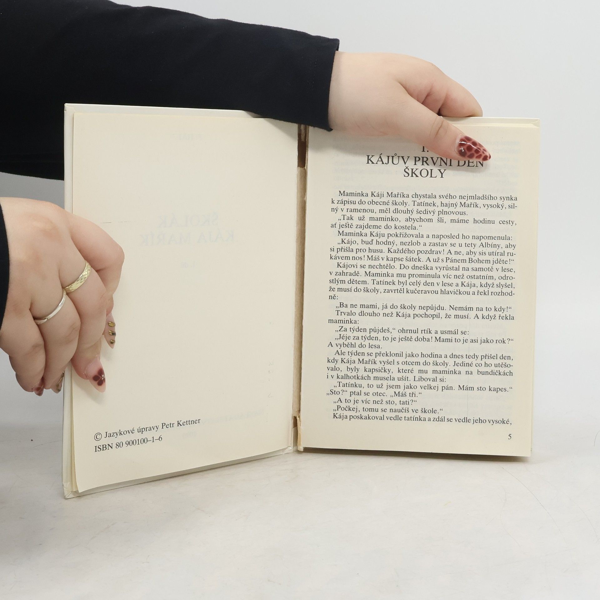 Knížka vypráví o příhodách čilého prvňáčka ze zbožné venkovské rodiny z počátku století. Kájovi se ve škole líbí, zejména náboženství a zpěv. Jinak miluje les a dovede být kamarádem zchoulostivělé dcerce otcova nadřízeného, kterou učí klukovské kousky. První díl série .