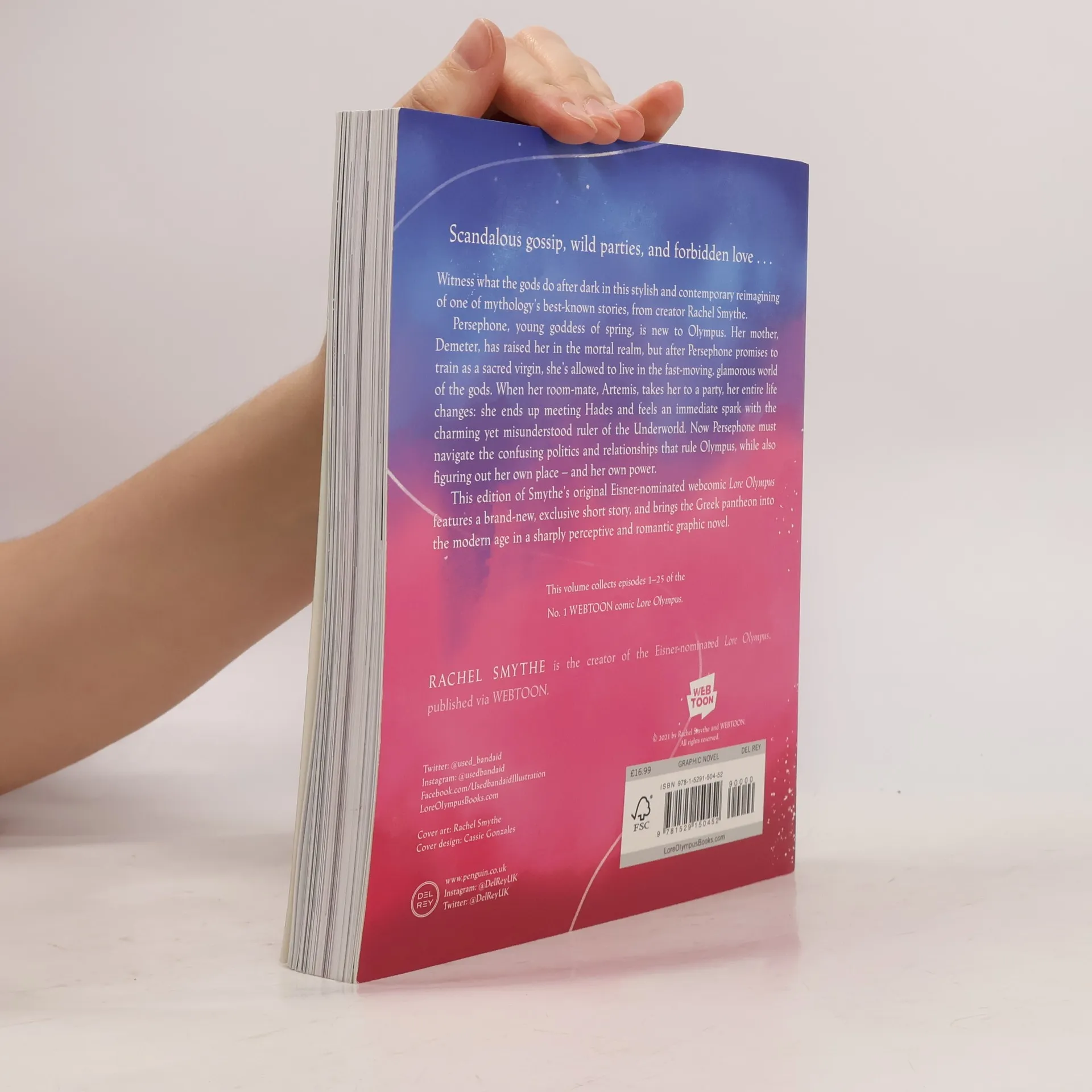 Scandalous gossip, wild parties, and forbidden love - witness what the gods do after dark in this stylish and contemporary reimagining of one of mythology's best-known stories.'Steamy, often laugh-out-loud funny and emotional' Jennifer L. Armentrout, # 1 New York Times bestselling author of From Blood and Ash ____________________________________ Persephone, young goddess of spring, is new to Olympus. Her mother, Demeter, has raised her in the mortal realm, but after Persephone promises to train as a sacred virgin, she's allowed to live in the fast-moving, glamorous world of the gods. When her roommate, Artemis, takes her to a party, her entire life changes: she ends up meeting Hades and feels an immediate spark with the charming yet misunderstood ruler of the Underworld.Now Persephone must navigate the confusing politics and relationships that rule Olympus, while also figuring out her own place - and her own power.This edition of Smythe's original Eisner-nominated webcomic Lore Olympus features a brand-new, exclusive short story, and brings the Greek pantheon into the modern age in a sharply perceptive and romantic graphic novel.This volume collects episodes 1-25 of the #1 WEBTOON comic Lore Olympus.