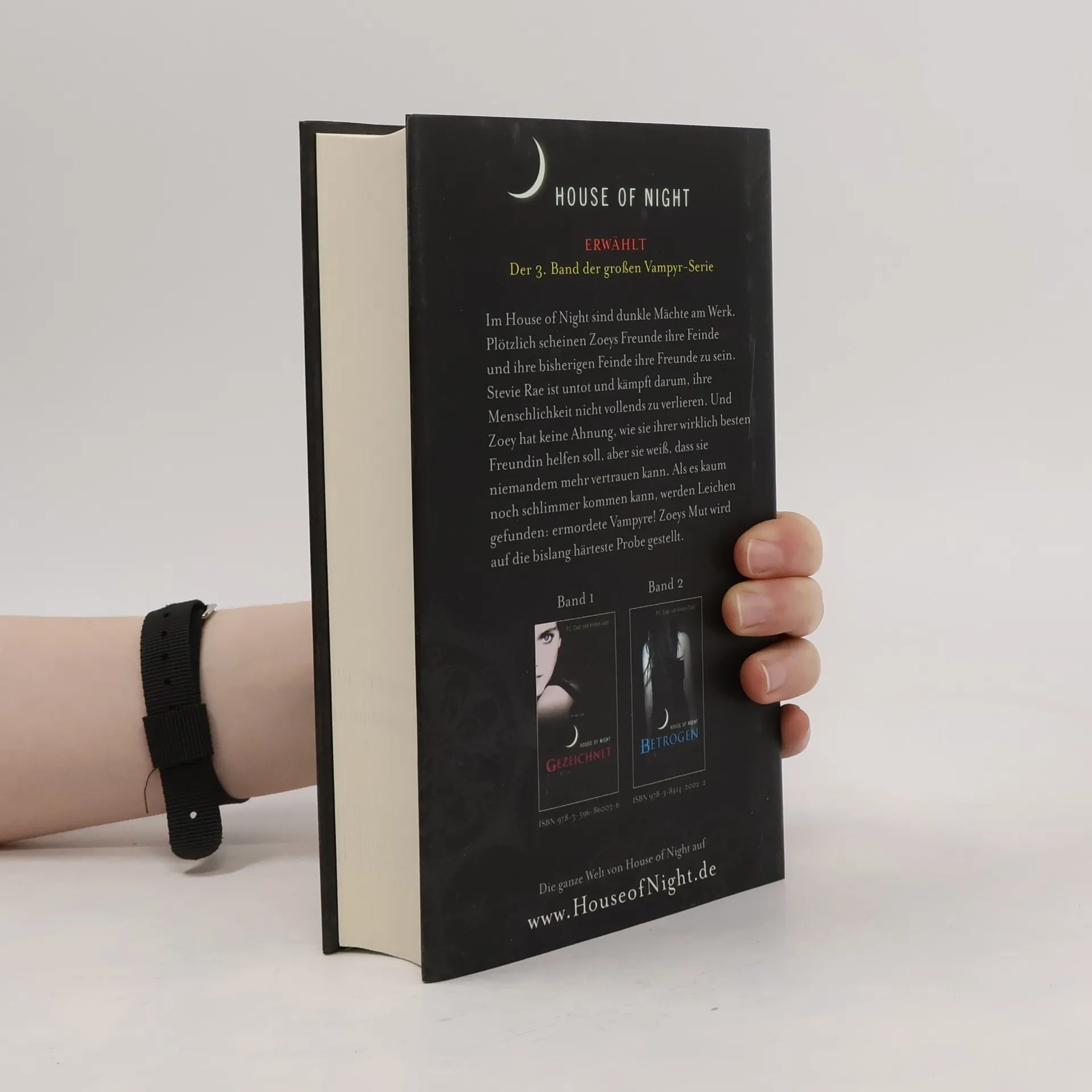 House of Night ERWÄHLTDer 3. Band der großen Vampyr-Serie. Dunkle Mächte sind im House of Night am Werk und Zoeys Erlebnisse im Internat nehmen eine rätselhafte Wendung. Zoeys beste Freundin Stevie Rae ist untot und versucht mit aller Macht, ihre Menschlichkeit nicht vollends zu verlieren. Und Zoey hat keine Ahnung, wie sie ihr dabei helfen kann, aber sie spürt, dass alles, was sie und Stevie Rae herausfinden vor den anderen im House of Night geheim gehalten werden muss. Denn plötzlich scheint es keinen mehr zu geben, dem sie wirklich vertrauen können. Als es kaum noch schlimmer kommen kann, werden Leichen gefunden: ermordete Vampyre! Aber Zoey findet heraus, dass nichts so ist wie es scheint… ERWÄHLT ist der dritte Band der House of Night- Serie, in der Zoey als Jungvampyrin auf die bislang härteste Probe gestellt wird.