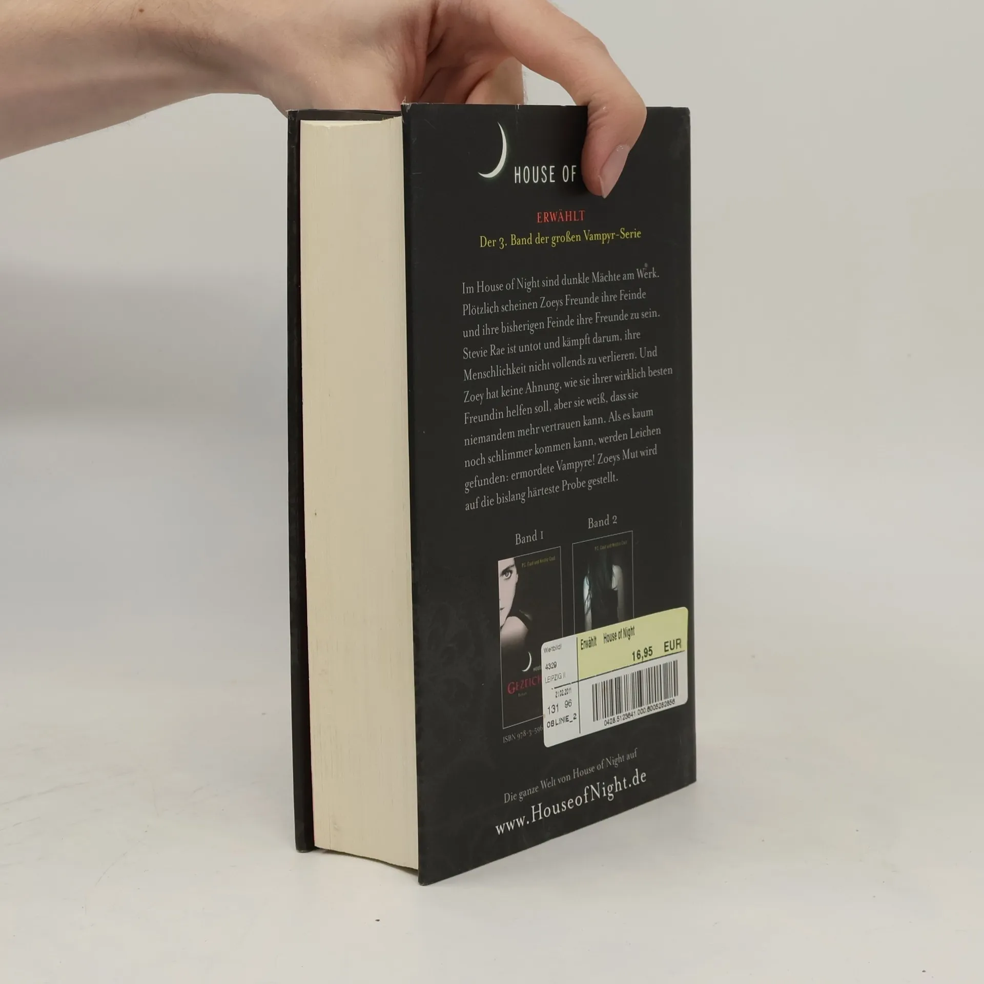 House of Night ERWÄHLTDer 3. Band der großen Vampyr-Serie. Dunkle Mächte sind im House of Night am Werk und Zoeys Erlebnisse im Internat nehmen eine rätselhafte Wendung. Zoeys beste Freundin Stevie Rae ist untot und versucht mit aller Macht, ihre Menschlichkeit nicht vollends zu verlieren. Und Zoey hat keine Ahnung, wie sie ihr dabei helfen kann, aber sie spürt, dass alles, was sie und Stevie Rae herausfinden vor den anderen im House of Night geheim gehalten werden muss. Denn plötzlich scheint es keinen mehr zu geben, dem sie wirklich vertrauen können. Als es kaum noch schlimmer kommen kann, werden Leichen gefunden: ermordete Vampyre! Aber Zoey findet heraus, dass nichts so ist wie es scheint… ERWÄHLT ist der dritte Band der House of Night- Serie, in der Zoey als Jungvampyrin auf die bislang härteste Probe gestellt wird.