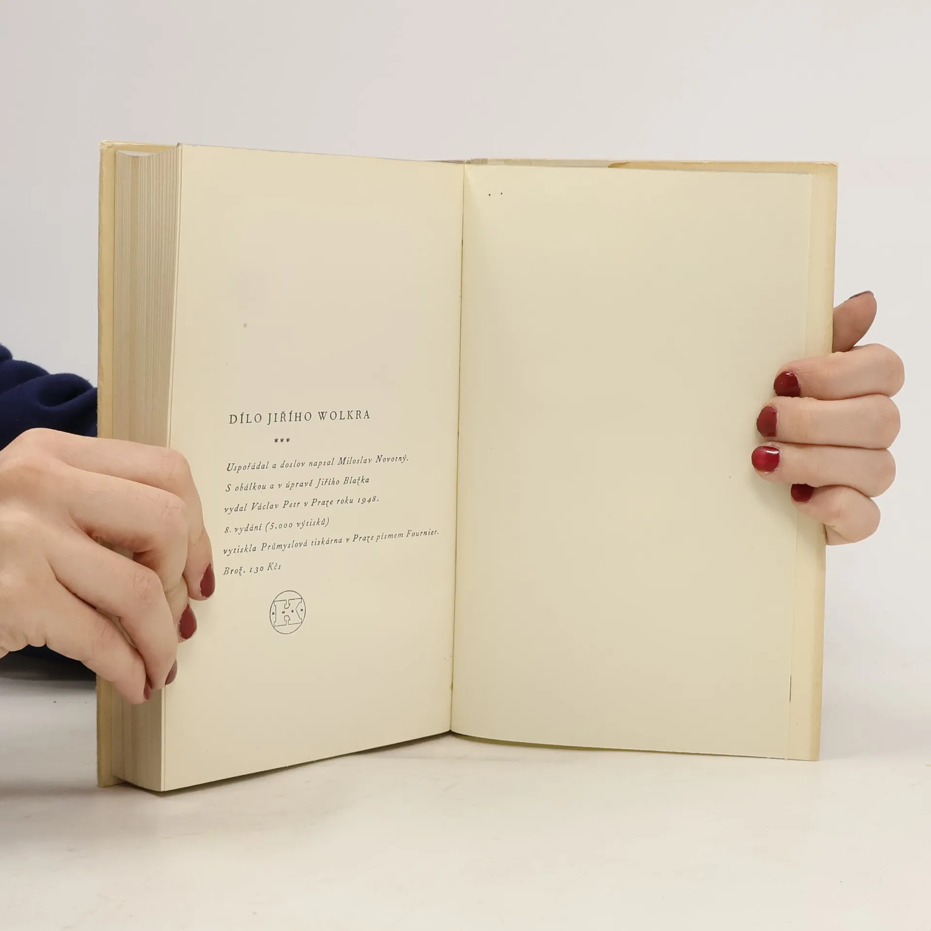 Bohatý výbor z mnohotvárné Wolkrovy literární činnosti. První část přináší v časové posloupnosti juvenilia (1918-1920), rozšířenou sbírku Host do domu, Těžkou hodinu a básně Z pozůstalosti (od října 1922 až do básníkovy smrti). Druhá část zahrnuje Wolkrovu beletristickou prózu: trojí ukázku z cyklu Básní v próze (1918-1919), Povídky a prózy, fragment románu Polární záře, Pohádky, Zápisky (1923) a Tři hry. Čtvrtá část svazku podává téměř úplný pořad zásadních úvah, programových projevů a kritických pojednání o tehdejších knižních novinkách (Úvahy, polemiky, soudy). Na konec svazku dává pořadatel téměř všechny projevy Wolkrova satirického vtipu literárního i politického (Satira veršem a prózou). 14.vydání