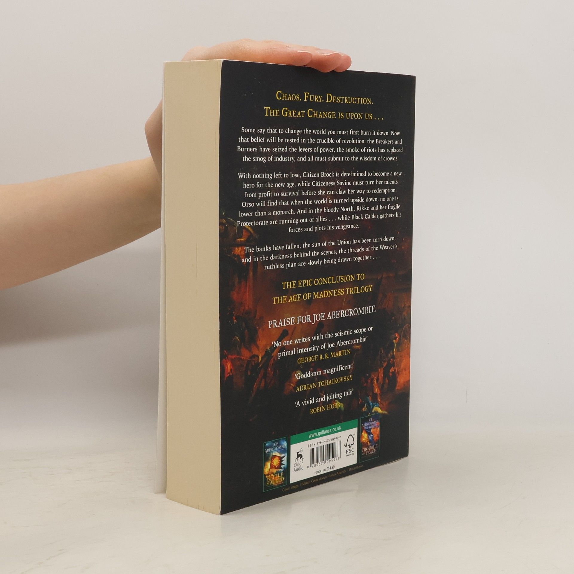 Some say that to change the world you must first burn it down. Now that belief will be tested in the crucible of revolution: the Breakers and Burners have seized the levers of power, the smoke of riots has replaced the smog of industry, and all must submit to the wisdom of crowds. With nothing left to lose, Citizen Brock is determined to become a new hero for the new age, while Citizeness Savine must turn her talents from profit to survival before she can claw her way to redemption. Orso will find that when the world is turned upside down, no one is lower than a monarch. And in the bloody North, Rikke and her fragile Protectorate are running out of allies... while Black Calder gathers his forces and plots his vengeance. The banks have fallen, the sun of the Union has been torn down, and in the darkness behind the scenes, the threads of the Weaver's ruthless plan are slowly being drawn together
