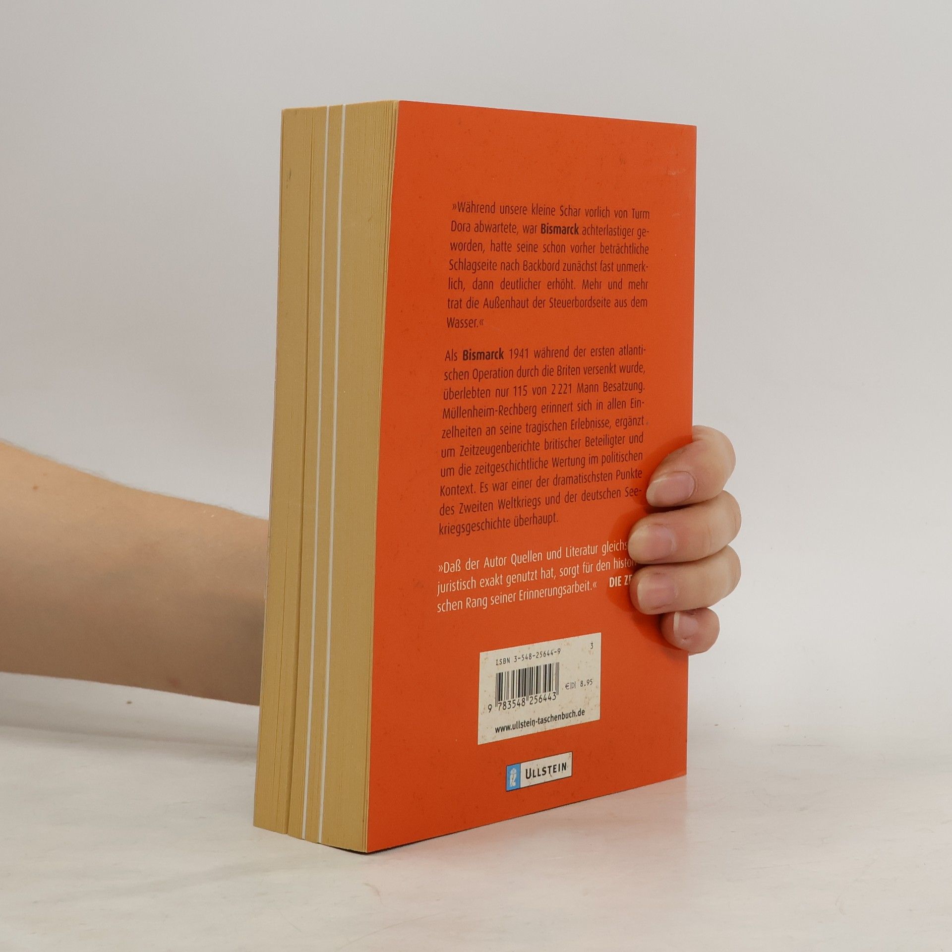 Als die „Bismarck“ am 27. Mai 1941 während ihrer ersten und einzigen atlantischen Operation, der „Rheinübung“, 400 Seemeilen westlich von Brest von britischen Schlachtschiffen versenkt wurde, überlebten nur 115 der 2221 Mann Besatzung. Die Erinnerungen Burkard Freiherr von Müllenheim-Rechbergs, einer der wenigen Überlebenden jenes Dramas, fanden weltweit höchste Beachtung. Die Verfolgung und der Untergang des Schlachtschiffes „Bismarck“ gehören zu den dramatischsten Ereignissen des Zweiten Weltkrieges und der Seekriegsgeschichte überhaupt.