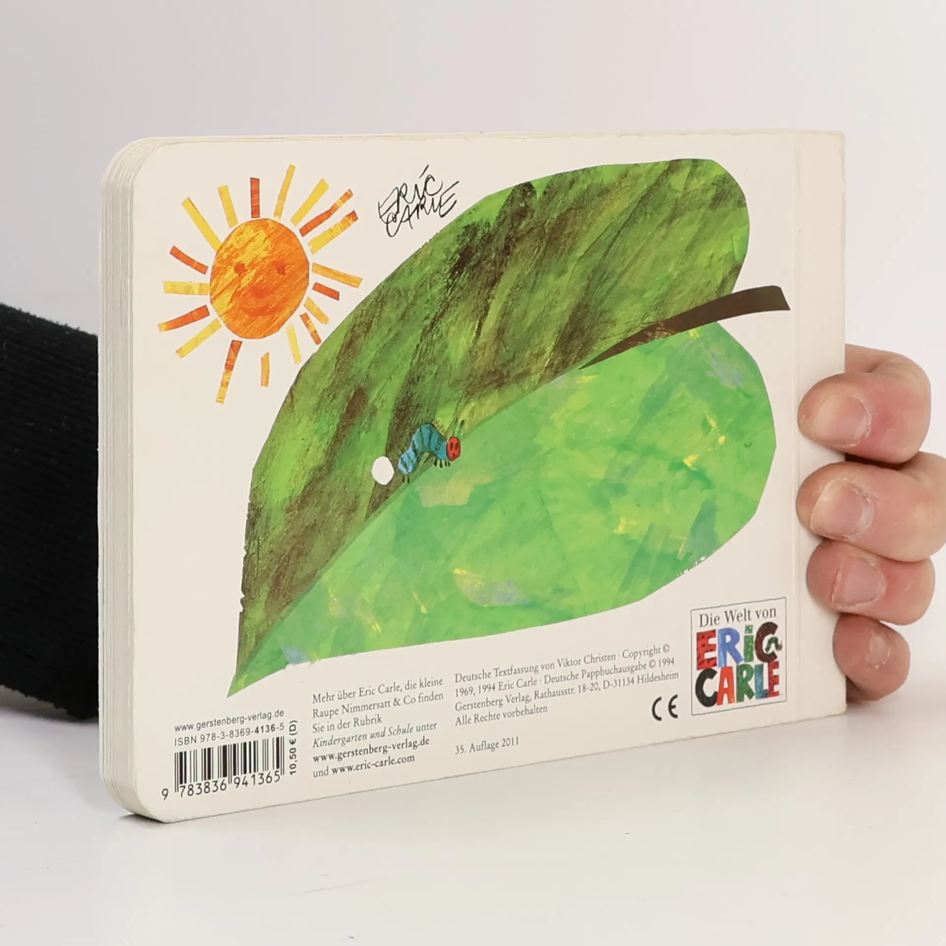 Auch kleine Raupen können großen Hunger haben. Deshalb macht sich die Raupe Nimmersatt auf die Suche nach etwas zu essen - und wird fündig. Sie frisst sich von Montag bis Sonntag Seite für Seite durch einen Berg von Leckereien, bis sie endlich satt ist. Nun ist die Zeit gekommen, sich einen Kokon zu bauen, und nach zwei Wochen des Wartens schlüpft aus ihm ein wunderschöner Schmetterling. Die Kleinsten spielen mit der Kleinen Raupe Nimmersatt, indem sie ihre Fingerchen durch die gestanzten Raupenfraßlöcher stecken. Etwas größere Kinder entdecken mit ihr die Wochentage, Früchte, Zahlen und die Metamorphose in der Natur. Und jeder liebt ihre geheime Hoffnungsbotschaft, die ihr Schöpfer Eric Carle so beschreibt: »Ich kann auch groß werden. Ich kann meine Flügel (meine Talente) auch ausbreiten und in die Welt fliegen.« Die kleine Raupe Nimmersatt besticht nicht zuletzt durch ihre farbenfrohen collageartigen Illustrationen und ihre besondere Ausstattung mit zum Teil verkürzten Seiten und Lochstanzungen. Seit Jahrzehnten ist sie ein Klassiker der Kinderliteratur und mit weltweit über 50 Millionen Exemplaren eines der meistverkauften Bilderbücher der Welt. Die Pappausgabe dieses Kinderbuchklassikers ist durch die hohe Stabilität und Griffigkeit für kleine Kinderhände geeignet. In diesem Format lässt sie sich besonders gut überallhin mitnehmen.