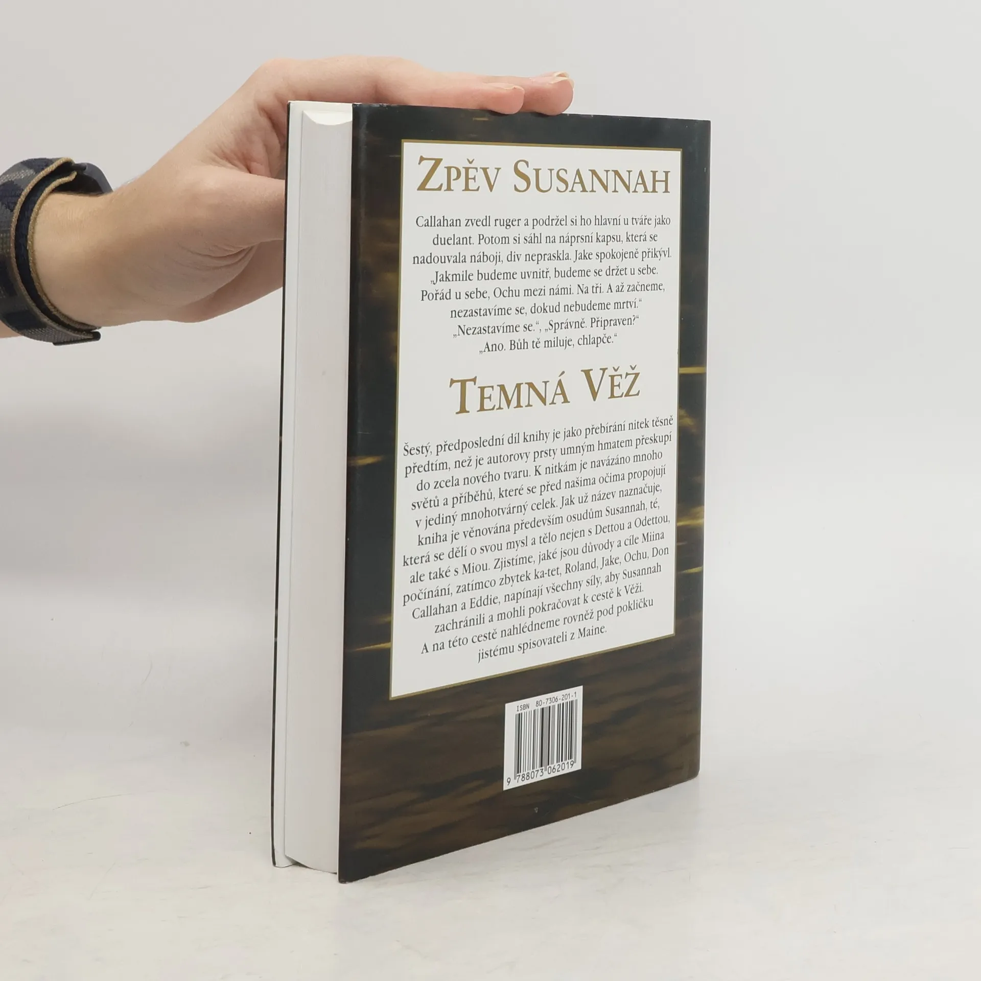 Šestý, předposlední díl knihy je jako přebírání nitek těsně předtím, než je autorovy prsty umným hmatem přeskupí do zcela nového tvaru. K nitkám je navázáno mnoho světů a příběhů, které se před našima očima propojují v jediný mnohotvárný celek. Jak už název naznačuje, kniha je věnována především osudům Susannah, té, která se dělí o svou mysl a tělo nejen s Dettou a Odettou, ale také s Miou. Zjistíme, jaké jsou důvody a cíle Miina počínání, zatímco zbytek ka-tet, Roland, Jake, Ochu, Don Callahan a Eddie, napínají všechny síly, aby Susannah zachránili a mohli pokračovat k cestě k Věži. A na této cestě nahlédneme rovněž pod pokličku jistému spisovateli z Maine.