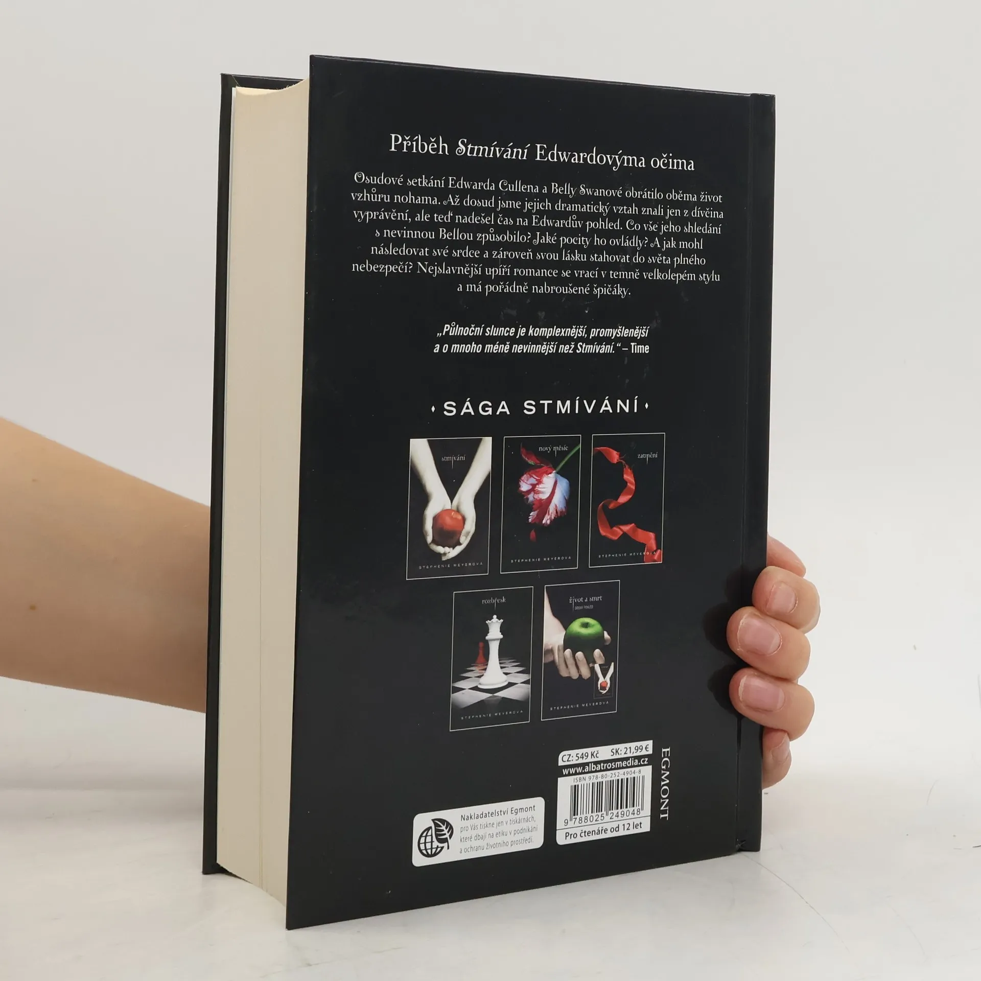 Osudové setkání Edwarda Cullena a Belly Swanové obrátilo oběma život vzhůru nohama. Až dosud jsme jejich dramatický vztah znali jen z dívčina vyprávění, ale teď nadešel čas na Edwardův pohled. Co vše jeho shledání s nevinnou Bellou způsobilo? Jaké pocity ho ovládly? A jak mohl následovat své srdce a zároveň svou lásku stahovat do světa plného nebezpečí? Nejslavnější upíří romance se vrací v temně velkolepém stylu a má pořádně nabroušené špičáky.