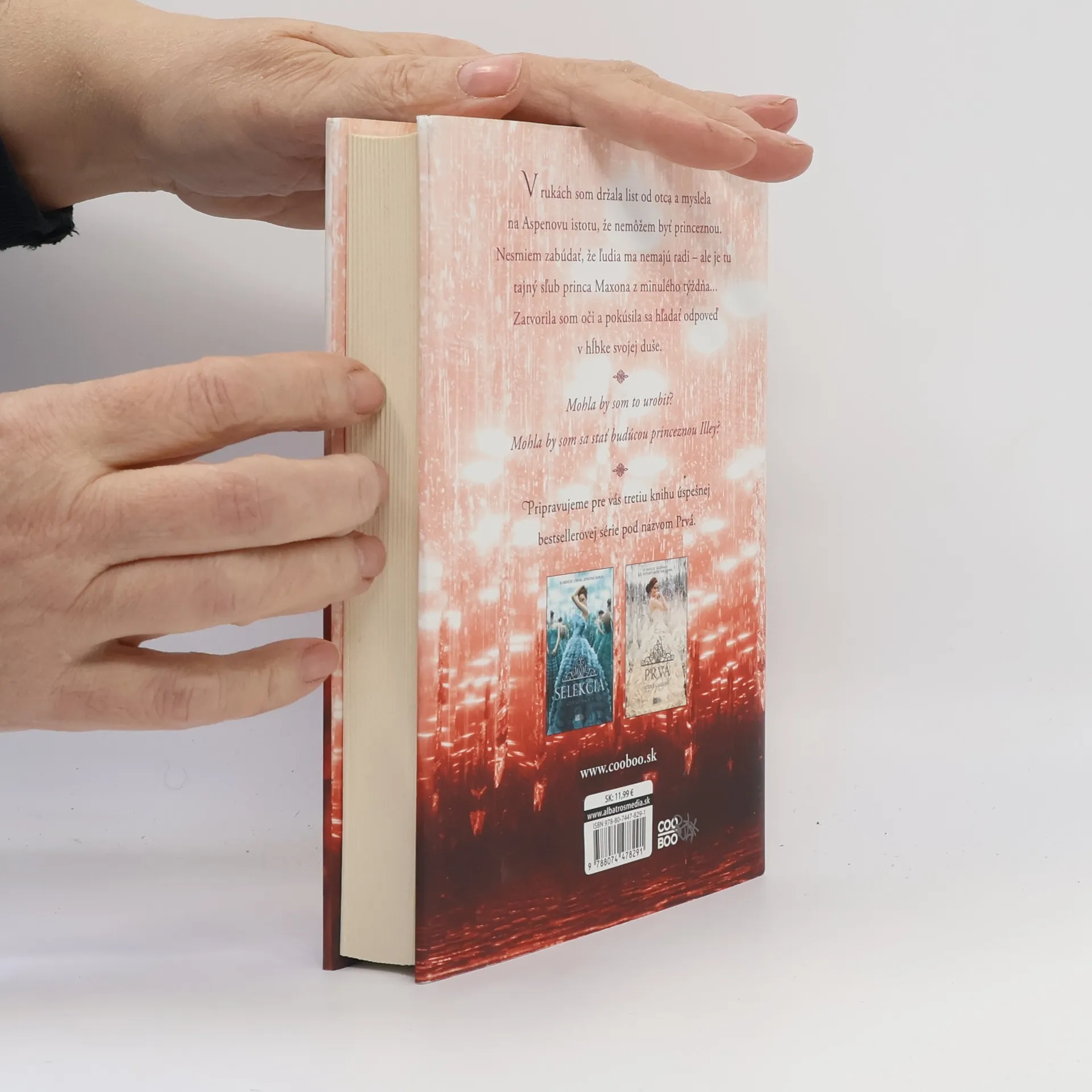 Súboj o vysnívaný život sa priostruje! Z tridsiatich piatich dievčat v Selekcii zostalo už len šesť elitných súperiek. America spolu s nimi naďalej bojuje o lásku princa Maxona, budúceho vládcu Illey, avšak stále si nie je istá, komu skutočne patrí jej srdce. Keď je s Maxonom, srdce sa jej chveje vzrušením, no zároveň sa obáva ich spoločnej budúcnosti. Pri Aspenovi, prvej veľkej láske, zas nedokáže zabudnúť na všetko krásne, čo spolu zažili. Elitné dievčatá sú však odhodlané získať princa pre seba za každú cenu. Konkurencia je stále tvrdšia, a preto sa aj America musí rozhodnúť. Neuľahčujú jej to ani rebeli, ktorí chcú zvrhnúť vládu kráľa, Maxonovho otca, a žiadajú zrušenie Selekcie. Keď si je America už istá svojím rozhodnutím, stane sa čosi nečakané a všetko sa zmení. Vyberie si napokon rozprávkový život s princom Maxonom alebo lásku Aspena, ktorý je jej bezpečným prístavom?