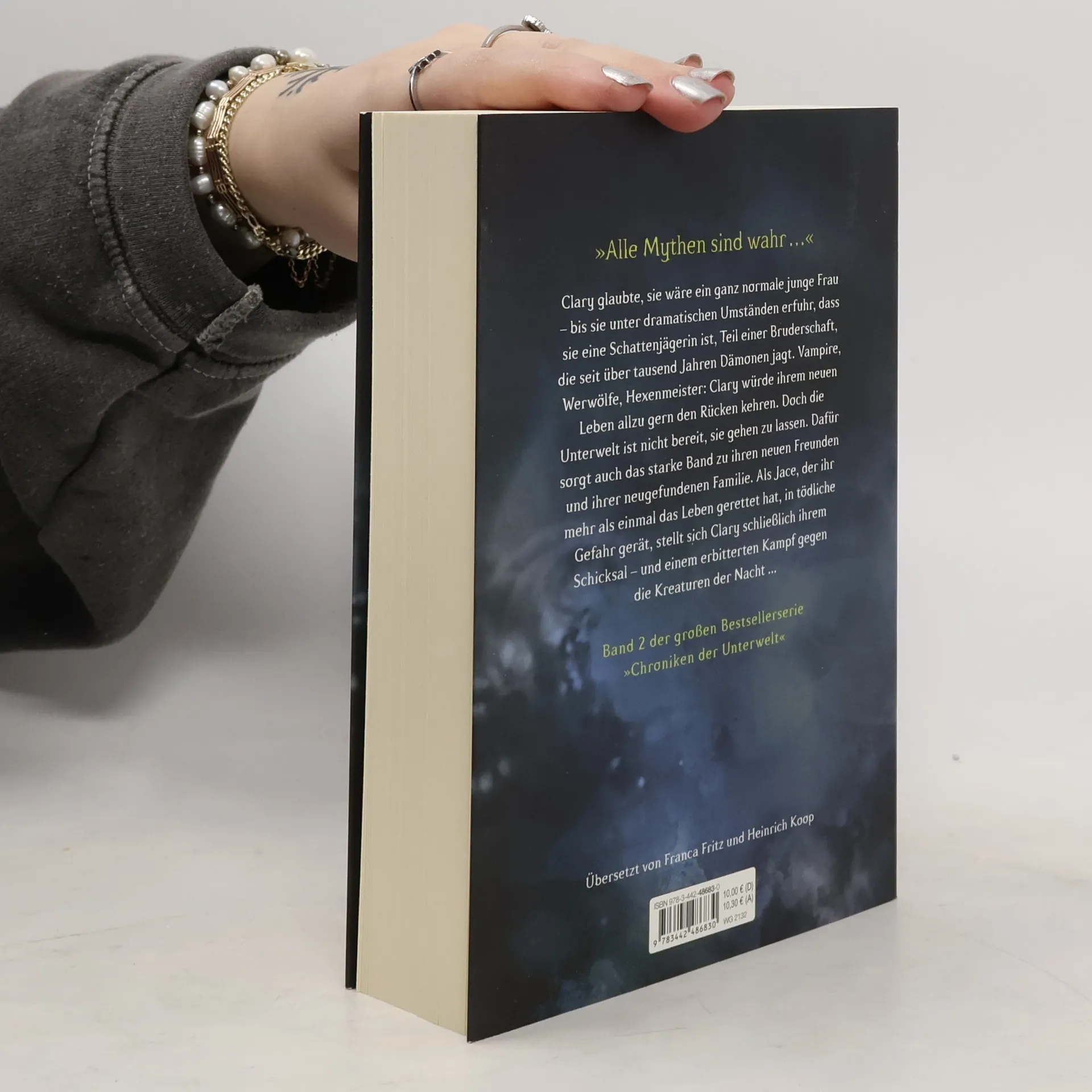 Clary glaubte, sie wäre ein ganz normale junge Frau – bis sie unter dramatischen Umständen erfuhr, dass sie eine Schättenjägerin ist, Teil einer Bruderschaft, die seit über tausend Jahren Dämonen jagt. Vampire, Werwölfe, Hexenmeister: Clary würde ihrem neuen Leben allzu gern den Rücken kehren. Doch die Unterwelt ist nicht bereit, sie gehen zu lassen. Dafür sorgt auch das starke Band zu ihren neuen Freunden, ihrer neugefundenen Familie. Und als Jace, der ihr mehr als einmal das Leben gerettet hat, in tödliche Gefahr gerät, stellt sich Clary schließlich ihrem Schicksal – und einem erbitterten Kampf gegen die Kreaturen der Nacht ...