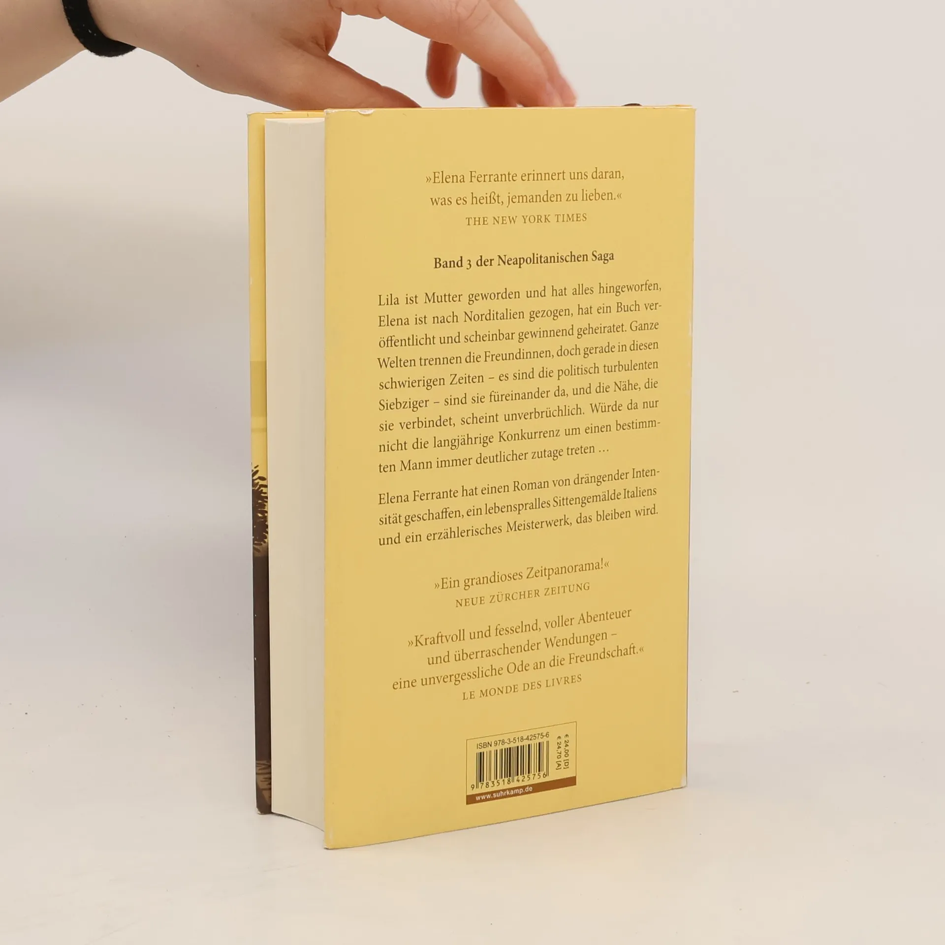 Es sind die turbulenten siebziger Jahre und die beiden inzwischen erwachsene Frauen. Lila ist Mutter geworden und hat sich befreit und alles hingeworfen – den Wohlstand, ihre Ehe, ihren neuen Namen – und arbeitet unter entwürdigenden Bedingungen in einer Fabrik. Elena hat ihr altes neapolitanisches Viertel hinter sich gelassen, das Studium beendet und ihren ersten Roman veröffentlicht. Als sie in eine angesehene norditalienische Familie einheiratet und ihrerseits ein Kind bekommt, hält sie ihren gesellschaftlichen Aufstieg für vollendet. Doch schon bald muss sie feststellen, dass sie ständig an Grenzen gerät. Ganze Welten trennen die Freundinnen, doch gerade in diesen schwierigen Jahren sind sie füreinander da, die Nähe, die sie verbindet, scheint unverbrüchlich. Würde da nur nicht die langjährige Konkurrenz um einen bestimmten Mann immer deutlicher zutage treten.