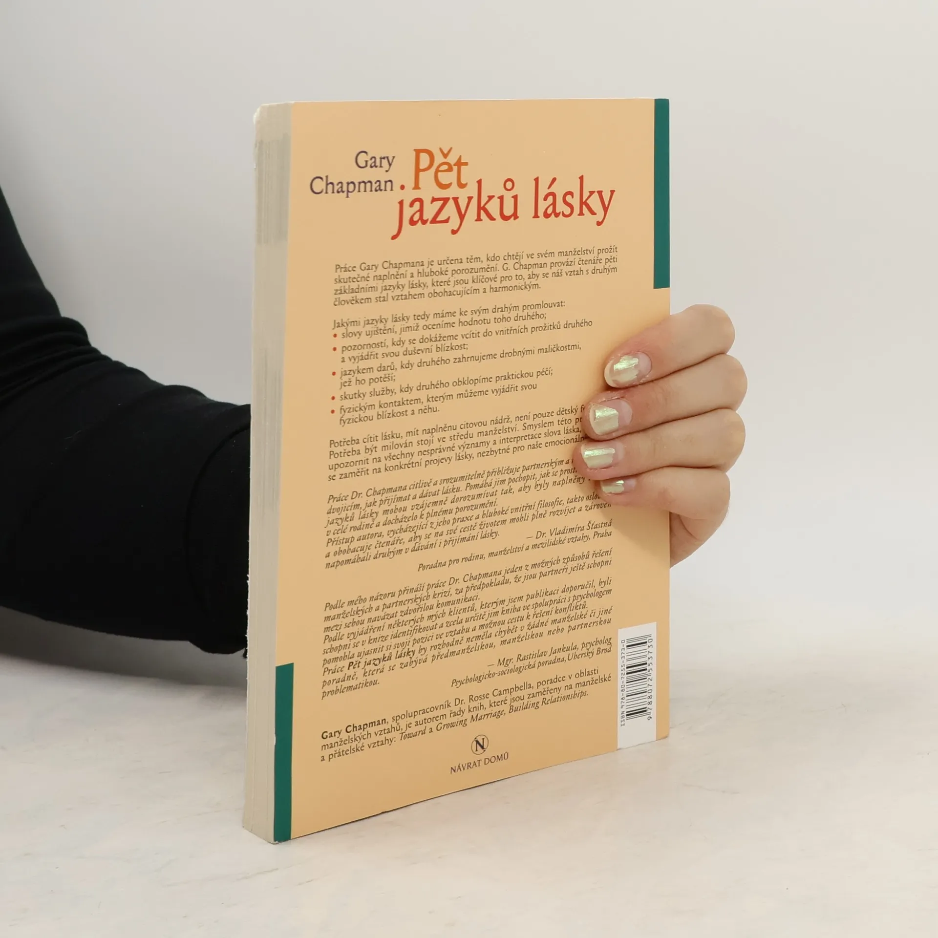 Práce Gary Chapmana je určena těm, kdo chtějí ve svém manželství prožít skutečné naplnění a hluboké porozumění. G. Chapman provází čtenáře pěti základními jazyky lásky, které jsou klíčové pro to, aby se náš vztah s druhým člověkem stal vztahem obohacujícím a harmonickým.
