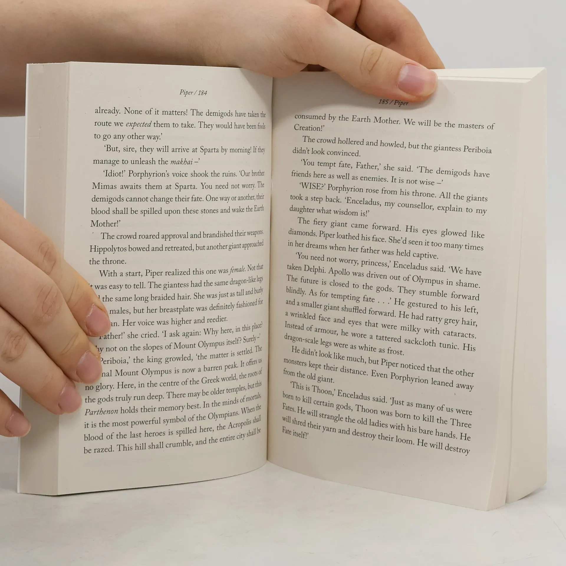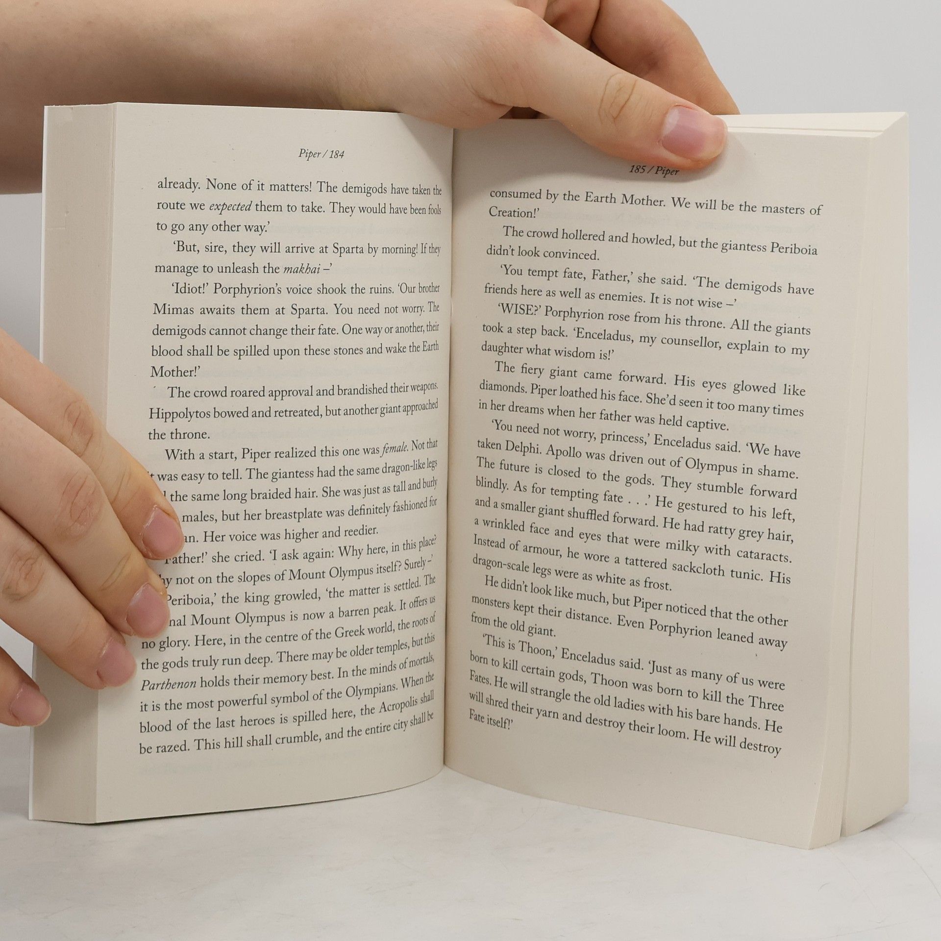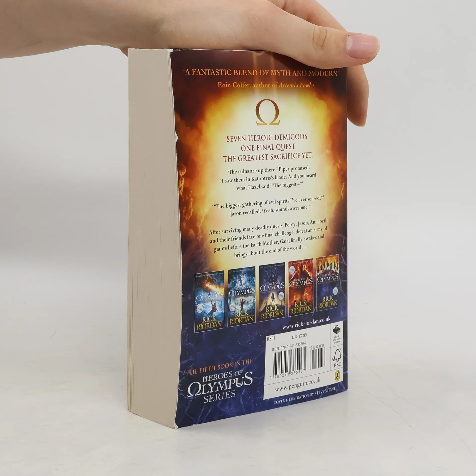 Though the Greek and Roman crewmembers of the Argo II have made progress in their many quests, they still seem no closer to defeating the earth mother, Gaea. Her giants have risen—all of them, and they're stronger than ever. They must be stopped before the Feast of Spes, when Gaea plans to have two demigods sacrificed in Athens. She needs their blood—the blood of Olympus—in order to wake. The demigods are having more frequent visions of a terrible battle at Camp Half-Blood. The Roman legion from Camp Jupiter, led by Octavian, is almost within striking distance. Though it is tempting to take the Athena Parthenos to Athens to use as a secret weapon, the friends know that the huge statue belongs back on Long Island, where it might be able to stop a war between the two camps. The Athena Parthenos will go west; the Argo II will go east. The gods, still suffering from multiple personality disorder, are useless. How can a handful of young demigods hope to persevere against Gaea's army of powerful giants? As dangerous as it is to head to Athens, they have no other option. They have sacrificed too much already. And if Gaea wakes, it is game over.