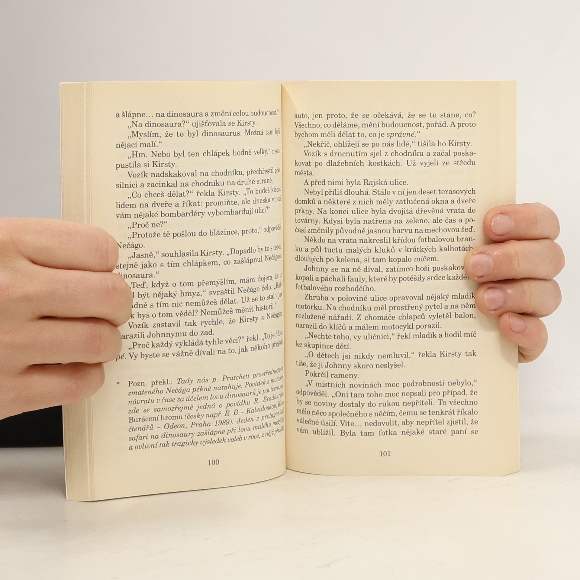 Třetí díl volné trilogie o Johnnym. Když Johnny Maxwell a jeho kamarádi našli paní Tachyonovou, místní žebračku, specializovanou na vybírání popelnic, věděli, že musí něco udělat. Byli ochotni pomoci jí jakkoliv, nebude-li to ovšem dýcháním z úst do úst. Jenže paní Tachyonová nemá jen vrzající vozík, který všude tahá s sebou, a několik igelitových tašek s pochybným obsahem. Tahle paní vlastní klíč k různým časům, různým epochám, včetně válečných dnů v Anglii roku 1941. Johnny a jeho přátelé a počítačová kamarádka Kirsty, se tentokrát ocitají v časovém příběhu, v němž jde o mnoho.