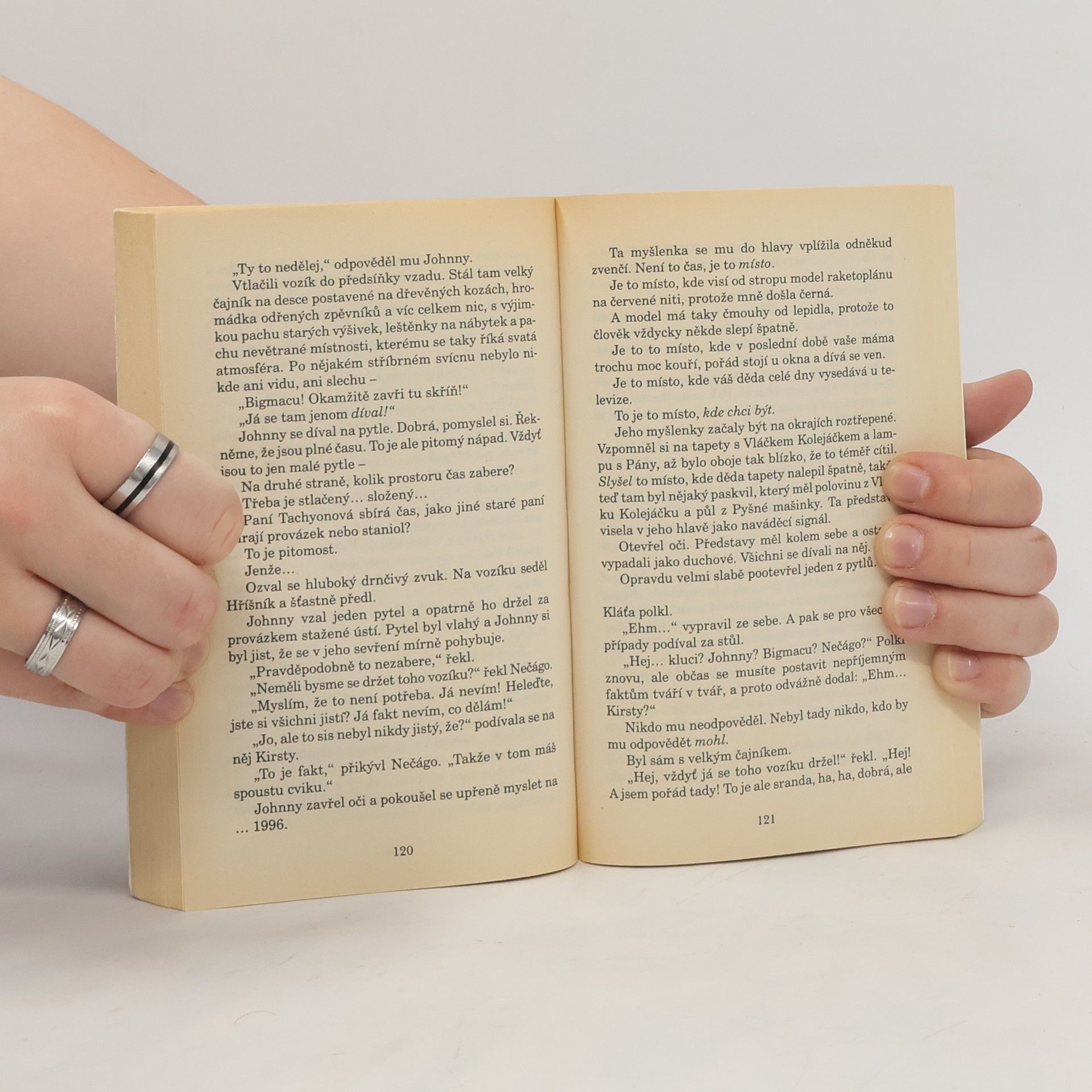 Když Johnny Maxwell a jeho kamarádi našli paní Tachyonovou, místní žebračku, specializovanou na vybírání popelnic, věděli, že musí něco udělat. Byli ochotni pomoci jakkoliv, nebude-li to ovšem dýcháním z úst do úst. Jenže paní Tachyonová nemá jen vrzající vozík, který všude tahá s sebou, a několik igelitových tašek s pochybným obsahem. Tahle paní vlastní klíč k různým časům, různým epochám, a to včetně válečných dnů dnů v Angliii roku 1941. Johnny a jeho přátelé, včetně počítačové kamarádky Kristy, se tentokrát ocitají v časovém příběhu, v němž jde o mnoho.