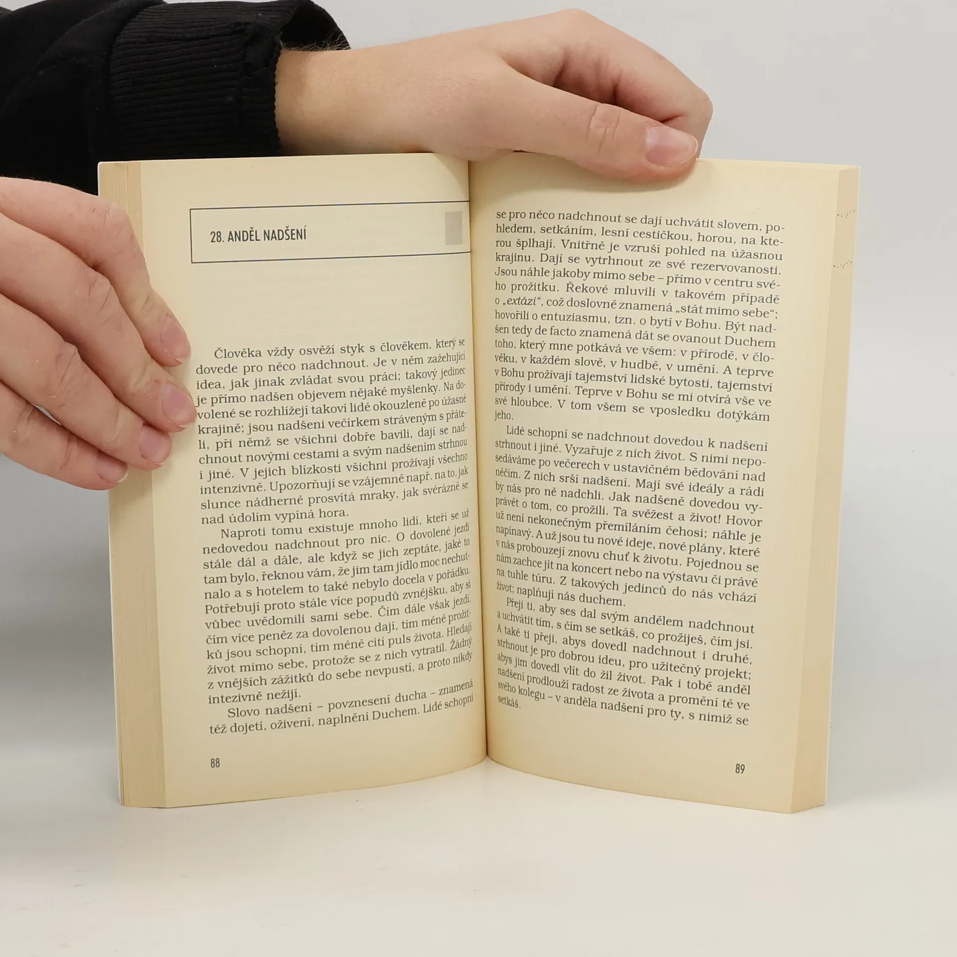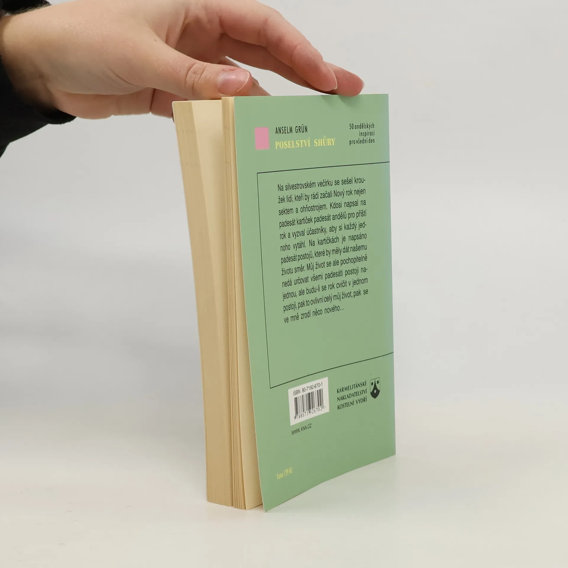 Podtitul: 50 andělských inspirací pro všední den. Na silvestrovském večírku se sešel kroužek lidí, kteří by rádi začali Nový rok nejen sektem a ohňostrojem. Kdosi napsal na padesát kartiček padesát andělů pro příští rok a vyzval účastníky, aby si každý jednoho vytáhl. Na kartičkách je napsáno padesát postojů, které by měly dát našemu životu směr. Můj život se pochopitelně nedá určovat všemi padesát postoji najednou, ale budu-li se rok cvičit v jednom postoji, pak to ovlivní celý můj život, pak se ve mně zrodí něco nového… Anděl lásky * Anděl smíření * Anděl rozpustilosti * Anděl opatrovník * Anděl exodu * Anděl společenství * Anděl oproštěnosti * Anděl vášně * Anděl pravdivosti * Anděl vděčnosti * Anděl odříkání * Anděl rizika * Anděl důvěry * Anděl samoty * Anděl sesterství a bratrství * Anděl odevzdanosti * Anděl hřejivého tepla * Anděl odvahy * Anděl trpělivosti * Anděl lehkosti * Anděl otevřenosti* Anděl střízlivosti * Anděl odpuštění * Anděl svobody * Anděl rozloučení * Anděl smutku* Anděl proměnění * Anděl nadšení * Anděl uzdravení * Anděl věrnosti * Anděl něžnosti * Anděl veselí * Anděl oddanosti * Anděl harmonie * Anděl jasu * Anděl pomalosti * Anděl ústupu * Anděl bdělosti * Anděl vlídnosti * Anděl pokory * Anděl naplnění * Anděl vytrvalosti * Anděl důvěry * Anděl milosrdenství * Anděl útěchy * Anděl obezřetnosti * Anděl úcty - uctivé bázně * Anděl pochopení * Anděl temnoty * Anděl ticha *