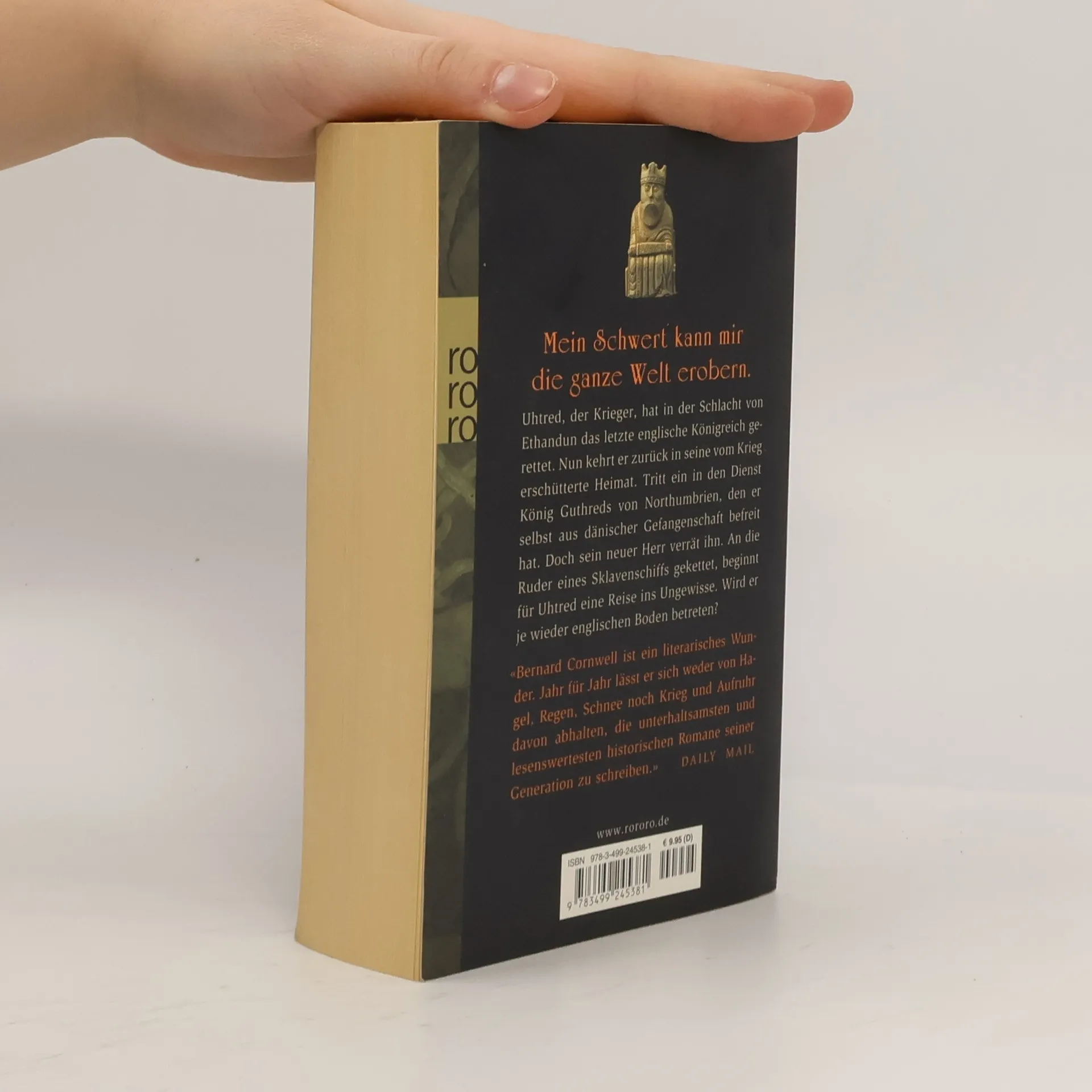 Mein Schwert kann mir die ganze Welt erobern Uhtred, der Krieger, hat in der Schlacht von Ethandun das letzte englische Königreich gerettet. Nun kehrt er zurück in seine vom Krieg erschütterte Heimat. Tritt ein in den Dienst König Guthreds von Northumbrien, den er selbst aus dänischer Gefangenschaft befreit hat. Doch sein neuer Herr verrät ihn. An die Ruder eines Sklavenschiffs gekettet, beginnt für Uhtred eine Reise ins Ungewisse. Wird er je wieder englischen Boden betreten? Die Uhtred-Romane, Band 3
