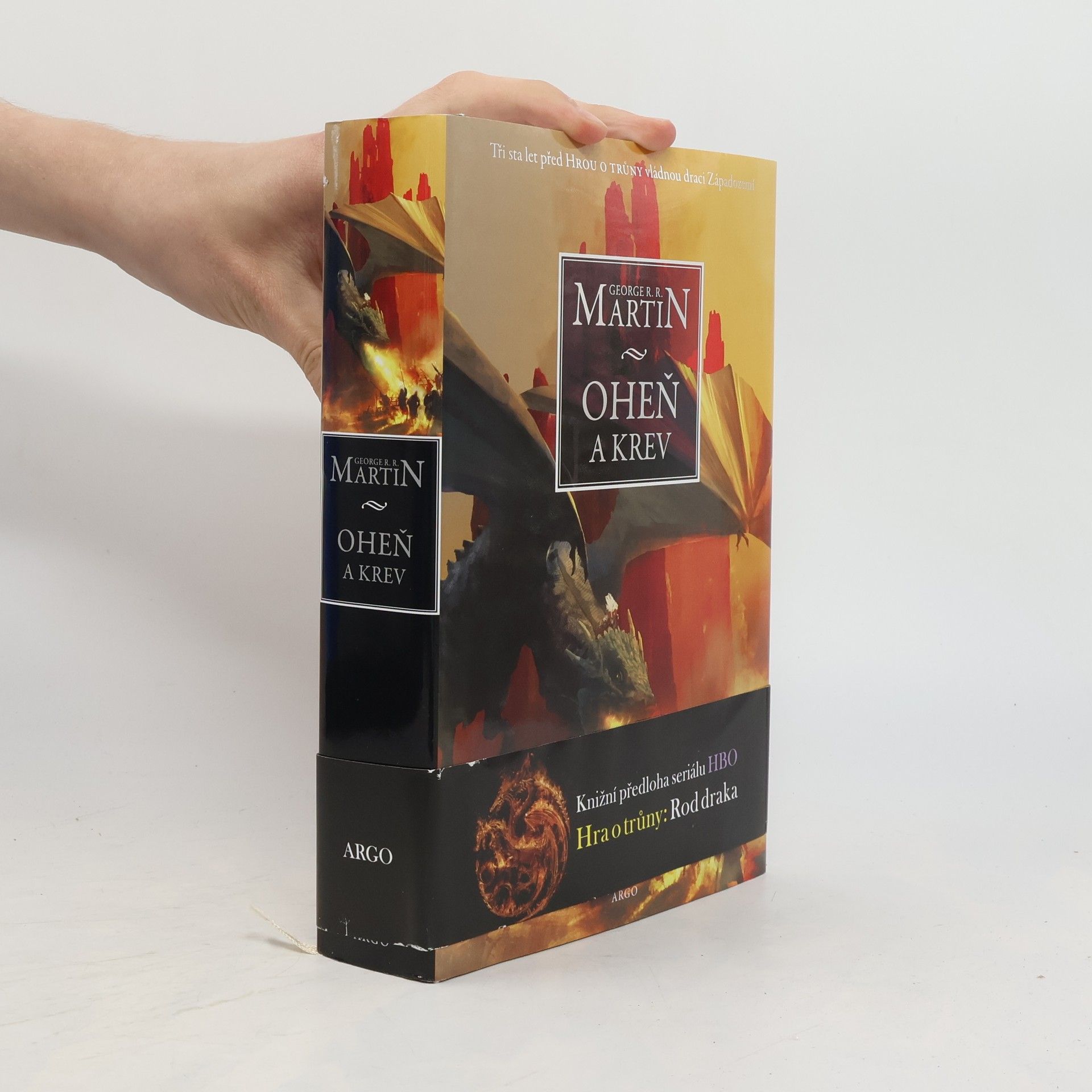 Historie targaryenských králů v Západozemí I. Staletí před událostmi líčenými ve Hře o trůny se rod Targaryenů – ti jediní z dračích pánů, kteří unikli Zkáze Valyrie – usídlil na Dračím kameni. Příběh Ohně a krve začíná u legendárního Aegona Dobyvatele, stvořitele Železného trůnu, a pokračuje přes generace Targaryenů bojujících o tento neblaze proslulý symbol, až po občanskou válku, která jejich dynastii téměř zničila. Co se doopravdy dělo během Tance draků? Proč bylo tak smrtelně nebezpečné vypravit se do Valyrie po Zkáze? Odkud pocházejí dračí vejce, která dostala Daenerys? To je jen několik z mnoha otázek, na něž najdete odpověď v kronice psané učeným mistrem Citadely a doprovázené desítkami ilustrací Douga Wheatleyho. Do tohoto příběhu jsme mohli letmo nahlédnout už v knihách, jako byl Svět ledu a ohně, ale teprve nyní se před námi spletitá historie Targaryenů odhaluje do posledního detailu. Oheň a krev, úvodní svazek dvoudílných dějin rodu Targaryenů, představuje ty nejvyhrocenější podoby hry o trůny a nabízí zcela nový pohled na bouřlivou, často krvavou a vždy fascinující historii Západozemí.