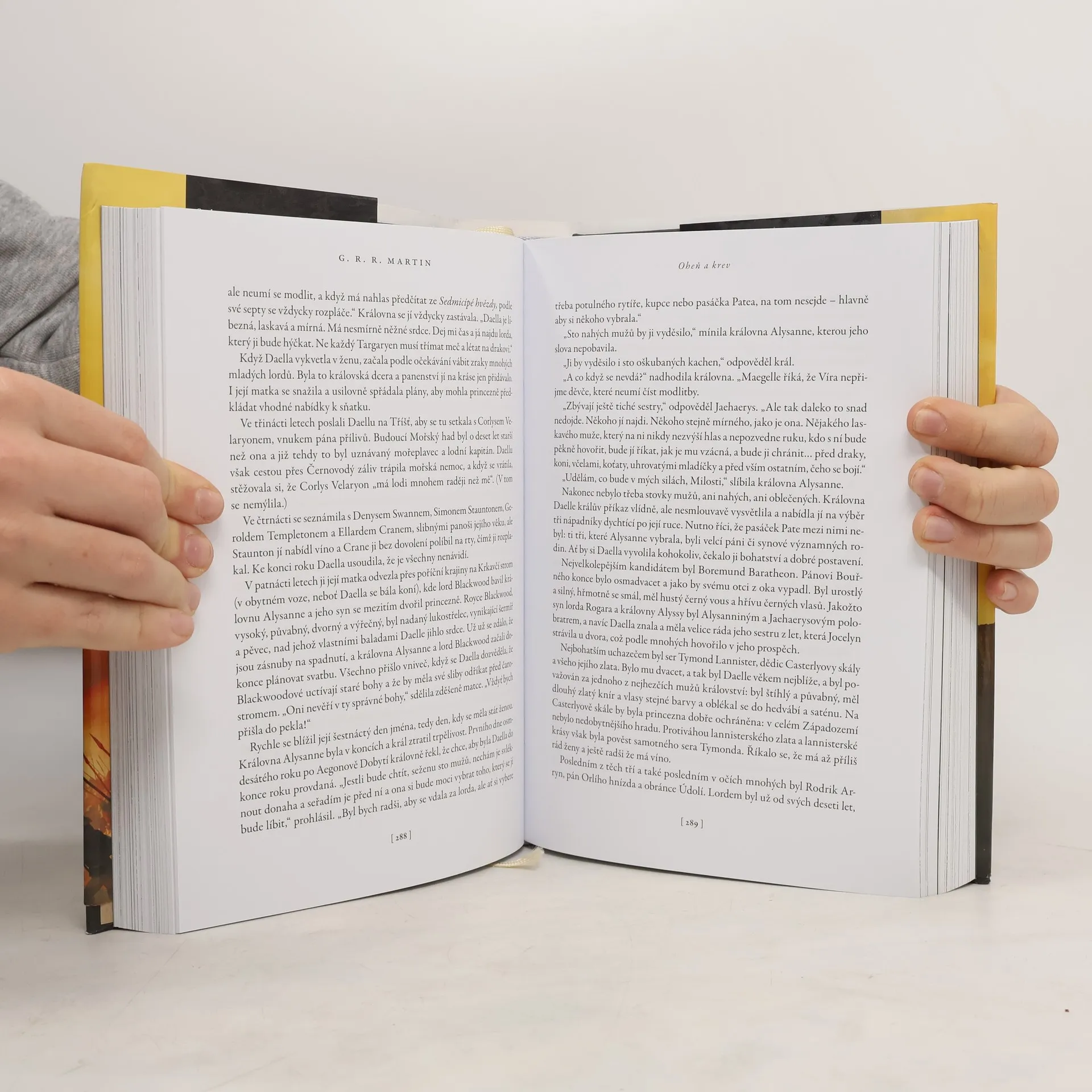 Historie targaryenských králů v Západozemí I. Staletí před událostmi líčenými ve Hře o trůny se rod Targaryenů – ti jediní z dračích pánů, kteří unikli Zkáze Valyrie – usídlil na Dračím kameni. Příběh Ohně a krve začíná u legendárního Aegona Dobyvatele, stvořitele Železného trůnu, a pokračuje přes generace Targaryenů bojujících o tento neblaze proslulý symbol, až po občanskou válku, která jejich dynastii téměř zničila. Co se doopravdy dělo během Tance draků? Proč bylo tak smrtelně nebezpečné vypravit se do Valyrie po Zkáze? Odkud pocházejí dračí vejce, která dostala Daenerys? To je jen několik z mnoha otázek, na něž najdete odpověď v kronice psané učeným mistrem Citadely a doprovázené desítkami ilustrací Douga Wheatleyho. Do tohoto příběhu jsme mohli letmo nahlédnout už v knihách, jako byl Svět ledu a ohně, ale teprve nyní se před námi spletitá historie Targaryenů odhaluje do posledního detailu. Oheň a krev, úvodní svazek dvoudílných dějin rodu Targaryenů, představuje ty nejvyhrocenější podoby hry o trůny a nabízí zcela nový pohled na bouřlivou, často krvavou a vždy fascinující historii Západozemí.