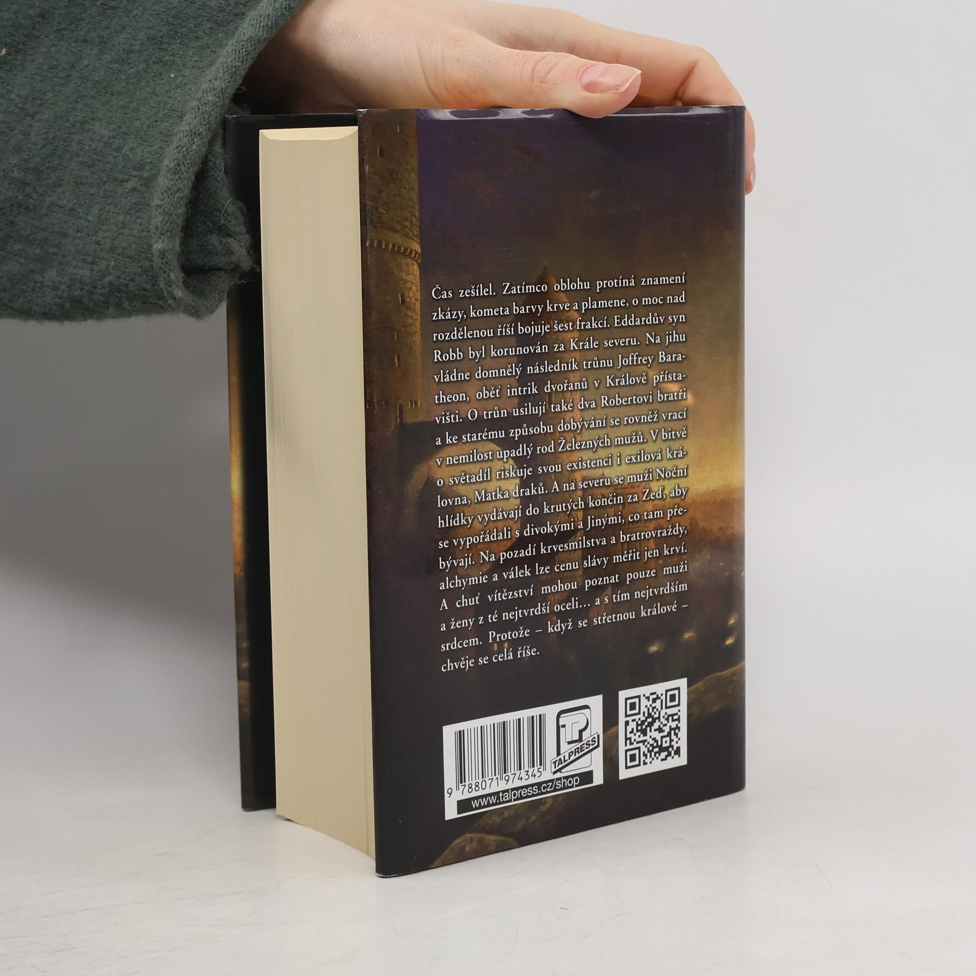 Čas zešílel. Deset let dlouhé léto pokoje a hojnosti se blíží ke konci, a jako zuřivá bestie se neodvratně blíží krutá, mrazivá zima. Dva mocní muži – král Robert Baratheon a lord Eddard Stark –, kteří třímali žezlo moci v časech nuceného míru, jsou mrtví. Zatímco oblohu protíná znamení zkázy – kometa barvy krve a plamene –, o moc nad rozdělenou říší bojuje šest frakcí. Eddarův syn Robb byl korunován za Krále severu. Na jihu vládne domnělý následník trůnu Joffrey Baratheon, oběť intrik dvořanů v Králově přístavišti. O trůn usilují také dva Robertovi bratři a ke starému způsobu dobývání se rovněž vrací v nemilost upadlý rod Železných mužů. V bitvě o světadíl riskuje svou existenci i exilová královna, Matka draků. A na severu se muži Noční hlídky vydávají do krutých končin za Zeď, aby se vypořádali s divokými a Jinými, co tam přebývají. Na pozadí krvesmilstva a bratrovraždy, alchymie a válek lze cenu slávy měřit jen krví. A chuť vítězství mohou poznat pouze muži a ženy z té nejtvrdší oceli… a s tím nejtvrdším srdcem. Protože – když se střetnou králové, chvěje se celá říše.
