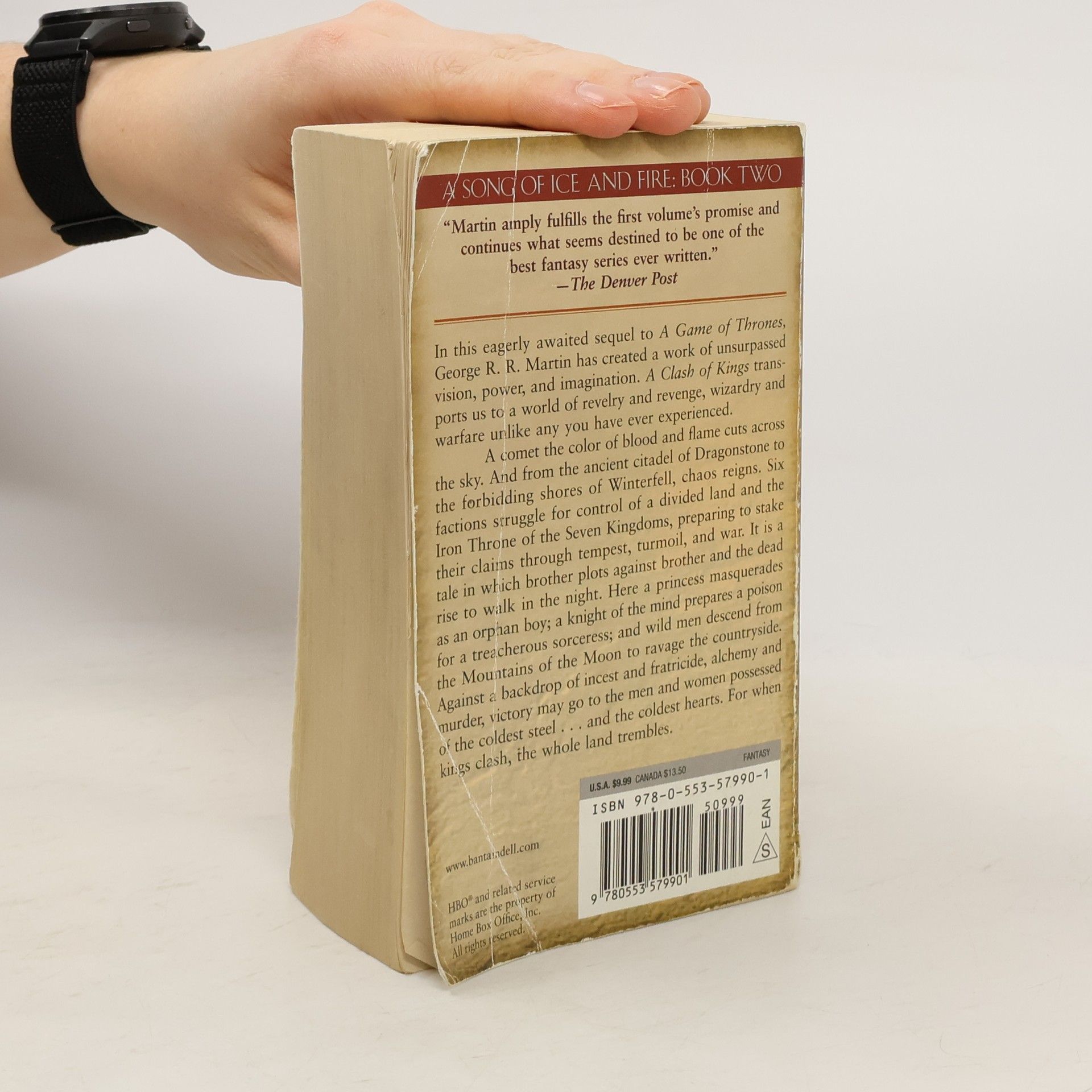 THE BOOK BEHIND THE SECOND SEASON OF GAME OF THRONES, AN ORIGINAL SERIES NOW ON HBO. In this eagerly awaited sequel to A Game of Thrones, George R. R. Martin has created a work of unsurpassed vision, power, and imagination. A Clash of Kings transports us to a world of revelry and revenge, wizardry and warfare unlike any you have ever experienced. A CLASH OF KINGS A comet the color of blood and flame cuts across the sky. And from the ancient citadel of Dragonstone to the forbidding shores of Winterfell, chaos reigns. Six factions struggle for control of a divided land and the Iron Throne of the Seven Kingdoms, preparing to stake their claims through tempest, turmoil, and war. It is a tale in which brother plots against brother and the dead rise to walk in the night. Here a princess masquerades as an orphan boy; a knight of the mind prepares a poison for a treacherous sorceress; and wild men descend from the Mountains of the Moon to ravage the countryside. Against a backdrop of incest and fratricide, alchemy and murder, victory may go to the men and women possessed of the coldest steel...and the coldest hearts. For when kings clash, the whole land trembles.