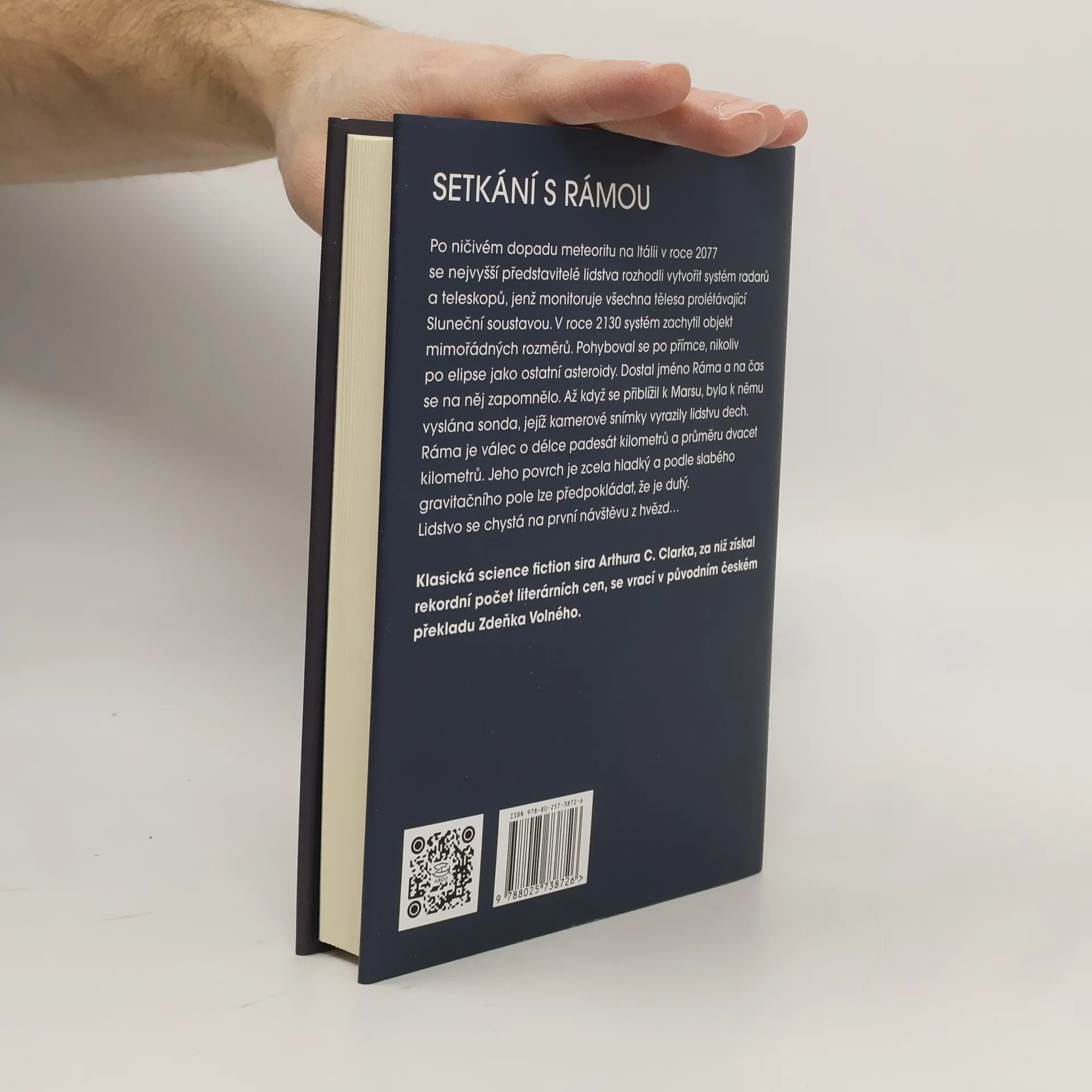 Poté, co bylo v roce 2077 v Itálii zničeno meteoritem území o několika stech kilometrech čtverečních, rozhodli se nejvyšší představitelé lidstva vytvořit systém radarů a teleskopů, které by monitorovaly všechna tělesa prolétávající naší soustavou. V roce 2130 zachytily radary těleso o mimořádných rozměrech. Pohybovalo se po přímce, nikoliv po elipse jako ostatní asteroidy. Dostalo jméno Ráma a na čas se na něj zapomnělo. Teprve když se přiblížilo k Marsu, byla k němu vyslána sonda. Kamerové snímky vyrazily lidstvu dech. Ráma byl válec o délce padesát kilometrů a průměru dvacet kilometrů. Jeho povrch byl úplně hladký a podle slabého gravitačního pole se dalo tušit, že je také dutý. Lidstvo se chystalo uvítat první návštěvu z hvězd… Klasická science fiction sira Arthura C. Clarka, za níž získal neuvěřitelnou řadu literárních ocenění, se vrací v původním českém překladu Zdeňka Volného.