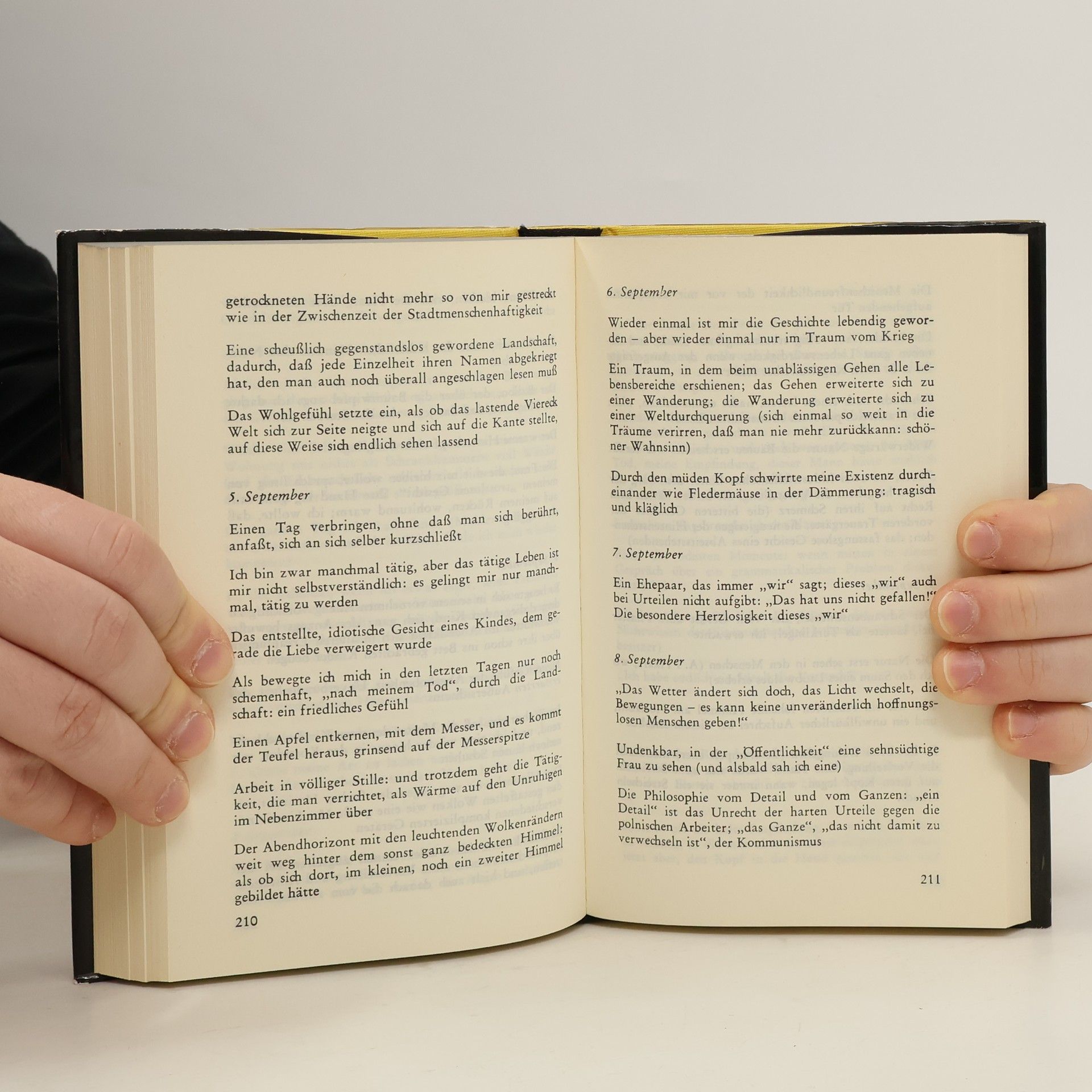 Die Arbeitsmoral dieser exemplarischen Aufzeichnungen ist ihre Genauigkeit, die, selbst wo sie aus der Verzweiflung kommt, eine Art von Freundlichkeit ist gegenüber der Welt. Was hier niedergeschrieben wurde, will nicht zur Nachahmung anstiften; aber man kann daraus leben lernen.