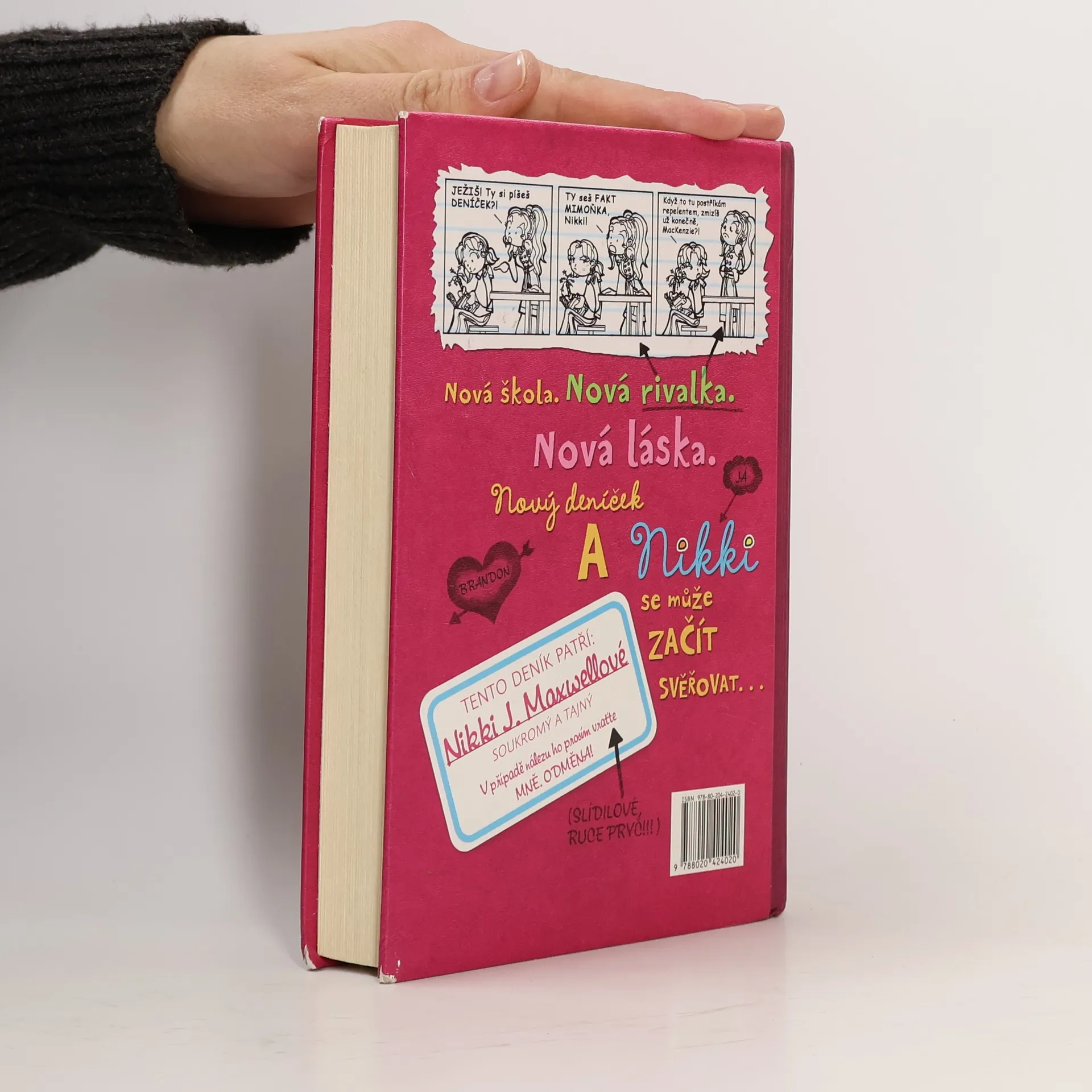 Nestačí, že Nikki J. Maxwellová má otce, který se živí hubením brouků. Ještě se kvůli tomu dostane do prestižní soukromé školy, kam moc nezapadá. Z pohledu její zapřisáhlé nepřítelkyně MacKenzie, dokonalé dívky, která má vše, co je třeba, je Nikki prostě „mimoňka“. A toto je její deník. Zachycující příhody každodenního života, například jak si chtěla z naslouchátka vyrobit luxusní hands-free, jak se snažila sbalit nejhezčího kluka a co zažívala se svými novými kamarádkami, Chloe a Zoey. Doplněno výstižnými ilustracemi. První vydání.