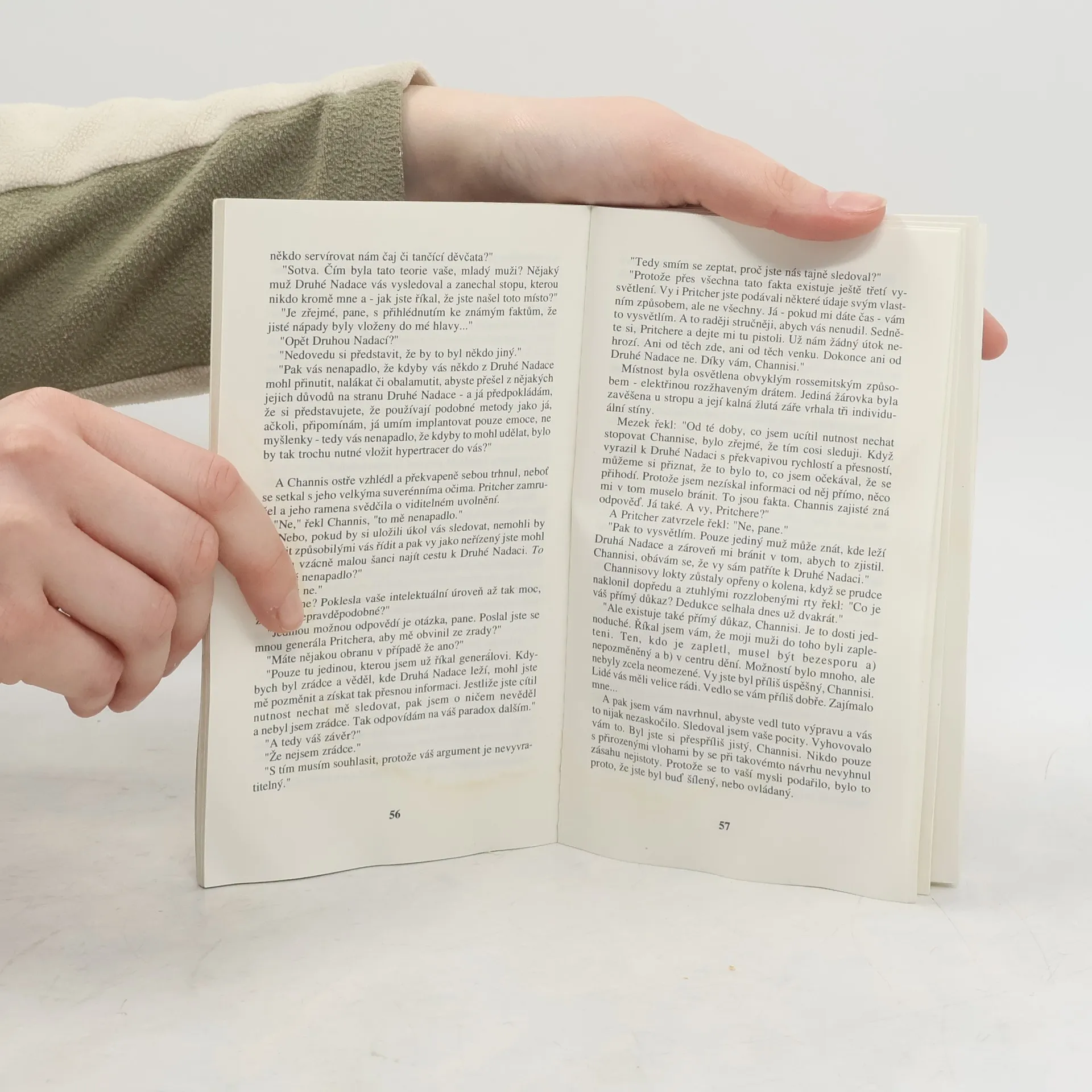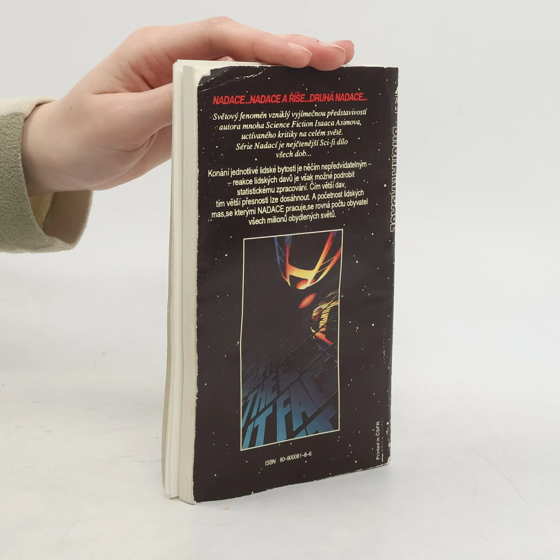 Anotace: Třetí román série Nadace. Konání jednotlivé lidské bytosti je něčím nepředvídatelným – reakce lidských davů je však možné podrobit statistickému zpracování. Čím větší dav, tím větší přesnosti lze dosáhnout. A početnost lidských mas, se kterými Nadace pracuje, se rovná počtu obyvatel všech miliónů obydlených světů. Seldonův plán leží v troskách – a s ním i impérium Nadace. Na Mezka, mutanta netušených psychických schopností, nestačily ani rovnice nejnadanějšího matematika všech dob. Vše však ještě není ztraceno: kdesi na druhém konci Galaxie se skrývá Drahá Nadace, v níž se i přes dlouhá století barbarství měly zachovat veškeré vědomosti lidstva. Mezkovi se Druhou Nadaci napoprvé nepodařilo najít. Teď si je jistý, že napodruhé to již vyjde. Osud lidstva spočívá v rukou Arkadie Darellové, čtrnáctileté dívky obtížené hrozným tajemstvím. A zatímco se vědci Druhé Nadace připravují na rozhodující střetnutí s Mezkem, zástupci přemožené První Nadace se vydávají do vesmíru na beznadějnou cestu. I oni chtějí přispět ke zkáze Druhé Nadace – dřív, než ona zničí je!... celý text
