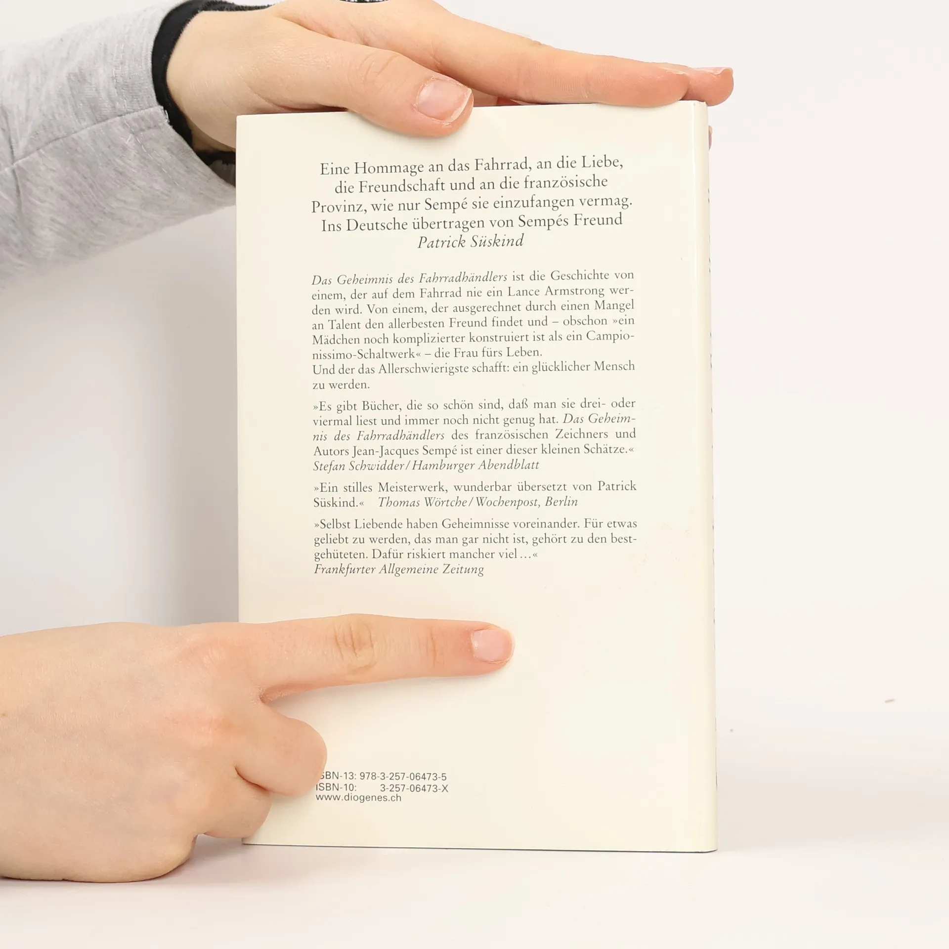 Sempé präsentiert uns in seiner unnachahmlichen Weise die Geschichte eines Anti-Indurains Paul Tamburins, des Fahrradhändlers aus dem französischen Städtchen Saint-Céron: eine Hommage ans Fahrrad, an die Liebe, die Freundschaft und an die französische Provinz, wie nur Sempé sie einzufangen vermag. Meisterhaft übersetzt von Patrick Süskind."