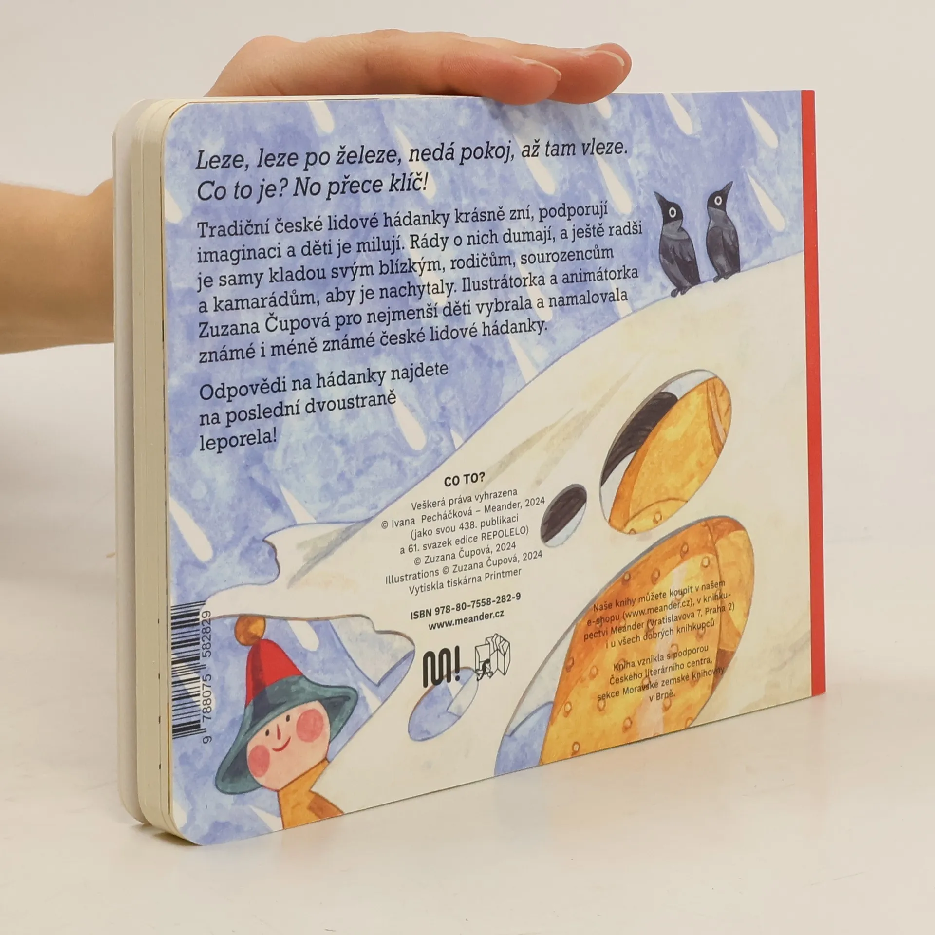 Autorka pro děti vybrala a namalovala známé i méně známé české lidové hádanky. Odpovědi na hádanky najdete na poslední dvoustraně knížky.