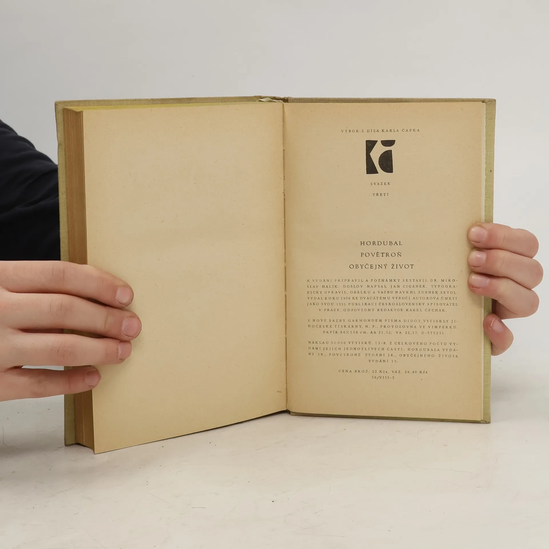 Hordubal. Povětroň. Obyčejný život, Karel Čapek