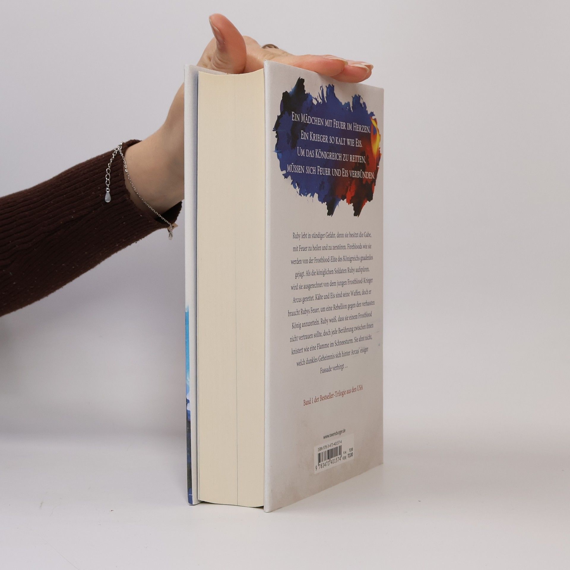 Ein Mädchen mit Feuer im Herzen.Ein Krieger so kalt wie Eis.Um das Königreich zu retten, müssen sich Feuer und Eis verbünden. Ruby lebt in ständiger Gefahr, denn sie besitzt die Gabe, mit Feuer zu heilen und zu zerstören. Firebloods wie sie werden von der Frostblood-Elite des Königreichs gnadenlos gejagt. Als die königlichen Soldaten Ruby aufspüren, wird sie ausgerechnet von dem jungen Frostblood-Krieger Arcus gerettet. Kälte und Eis sind seine Waffen, doch er braucht Rubys Feuer, um eine Rebellion gegen den verhassten König anzuzetteln. Ruby weiß, dass sie einem Frostblood nicht vertrauen sollte, doch jede Berührung zwischen ihnen knistert wie eine Flamme im Schneesturm. Sie ahnt nicht, welch dunkles Geheimnis sich hinter Arcus‘ eisiger Fassade verbirgt … Band 1 der Bestseller-Trilogie aus den USA
