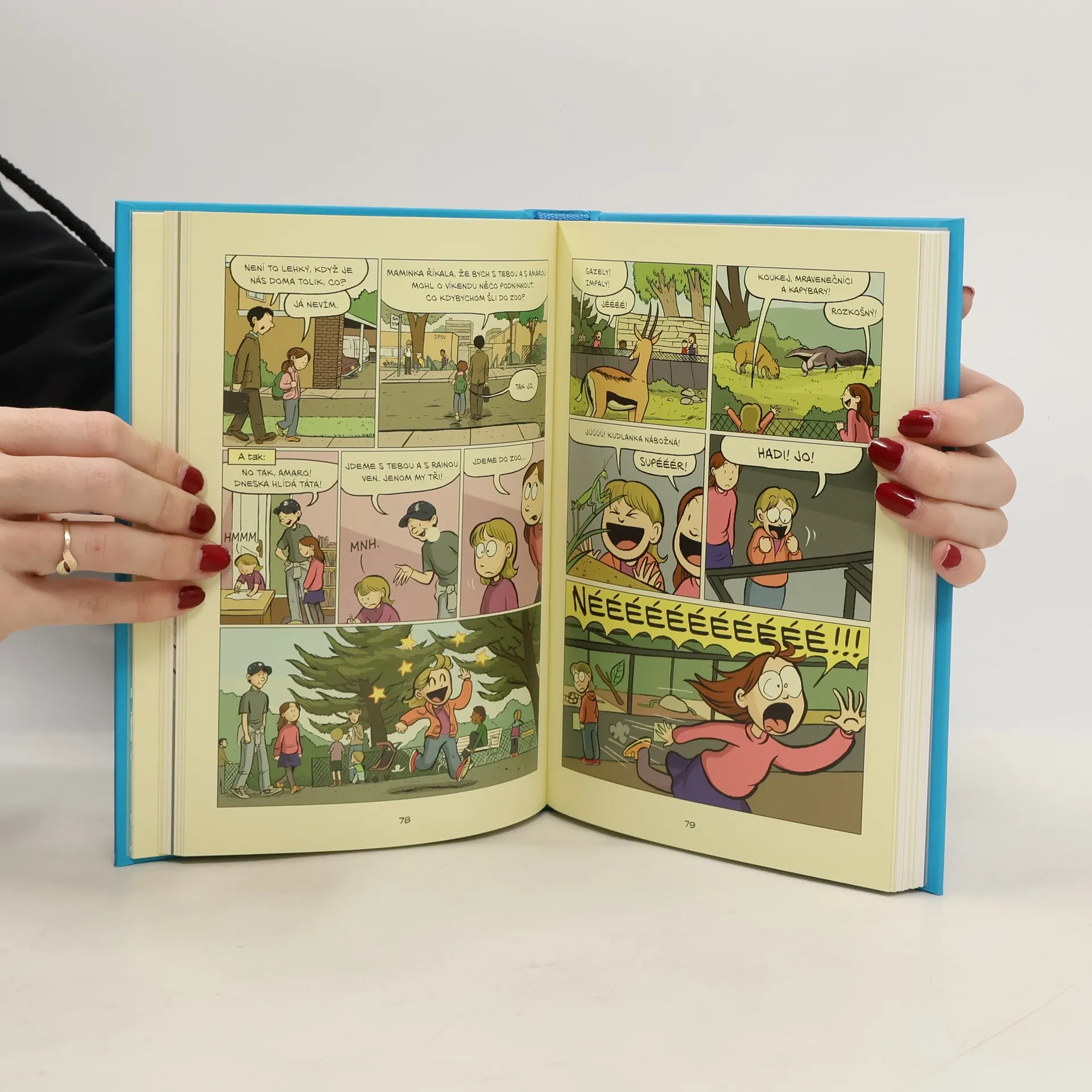 Raina se nemůže dočkat, až bude mít sourozence. Ale jen do chvíle, než se její sestřička narodí - Amara je úplně jiná, než si Raina představovala. Je sice roztomilá, jenže je taky náladové, ubrečené mimino. Během let se jejich vztah příliš nelepší, později se navíc objeví mladší brácha a mezi rodiči to začne skřípat. Jak se ségry vyrovnají s několikadenní cestou autem přes západ Spojených států a rodinným srazem? Po úspěchu komiksu Úsměv se Raina Telgemeierová vrátila k autobiografickému vyprávění o vlastní rodině. Ukázala, že vyzrála v autorku autentických, nadčasových příběhů, s nimiž se může identifikovat kdokoli - dospívající čtenář i jeho rodič.
