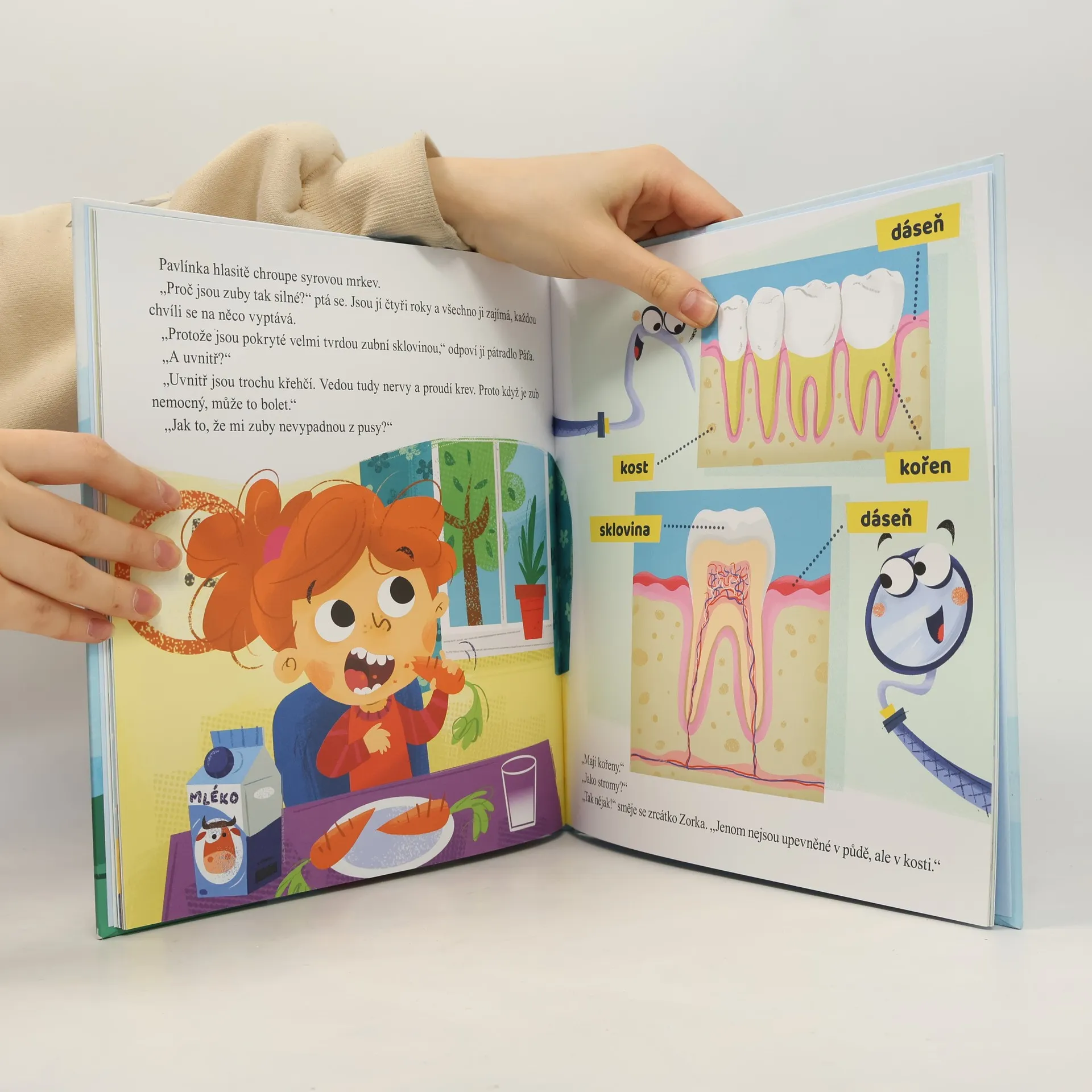 Pavlínka má maminku zubařku, a tak má pravidelnou kontrolu svých zoubků zábavnou. Maminka jí vysvětlí vše, co ji kolem zubů zajímá. Ty si v knize rovněž můžeš přečíst všechno, co chceš o zubech vědět. Možná ti vrtá v hlavě, odkud se berou zuby a proč se děti vlastně rodí bez zubů? A když jim vyrostou mléčné zuby, proč jim po čase zase vypadají a narostou nové? Jedna zásadní otázka zní – proč je důležité si zuby čistit? Od ní se odvíjejí další dotazy. Jsou sladkosti pro zuby skutečně nebezpečné? Jak si co nejlépe čistit zuby? K čemu je dobrá zubní nit? Máš kamarády s rovnátky, popřípadě i ty nosíš rovnátka? K čemu slouží? Chystáš se na svou první kontrolní návštěvu k zubaři. Jak to tam bude vypadat? V knize se prostě dovíš vše potřebné a přijdeš na to, že návštěva zubaře není zbytečná, je to tam naopak dokonce i zajímavé.
