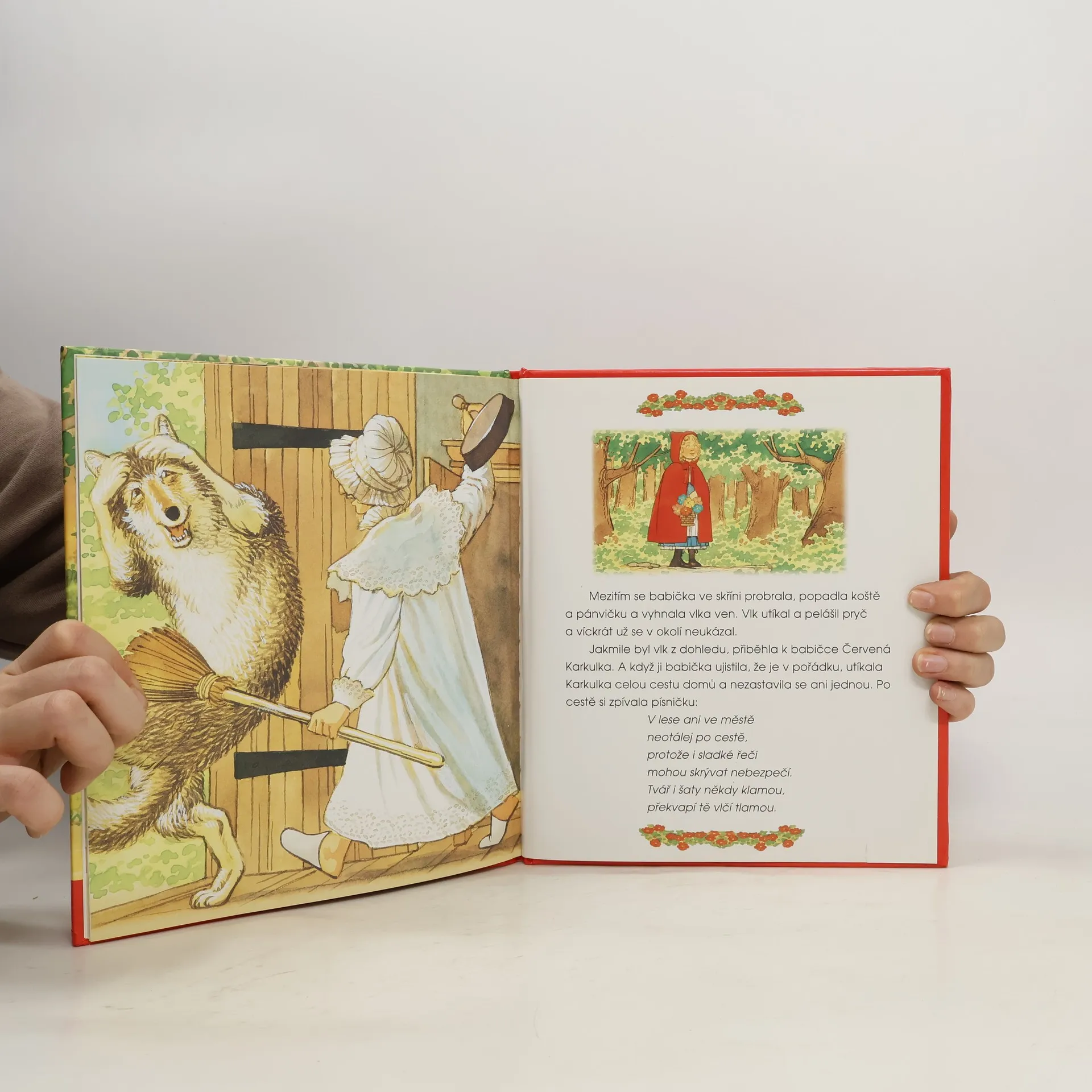 Známá pohádka o děvčátku v červeném čepečku, které šlo navštívit babičku.