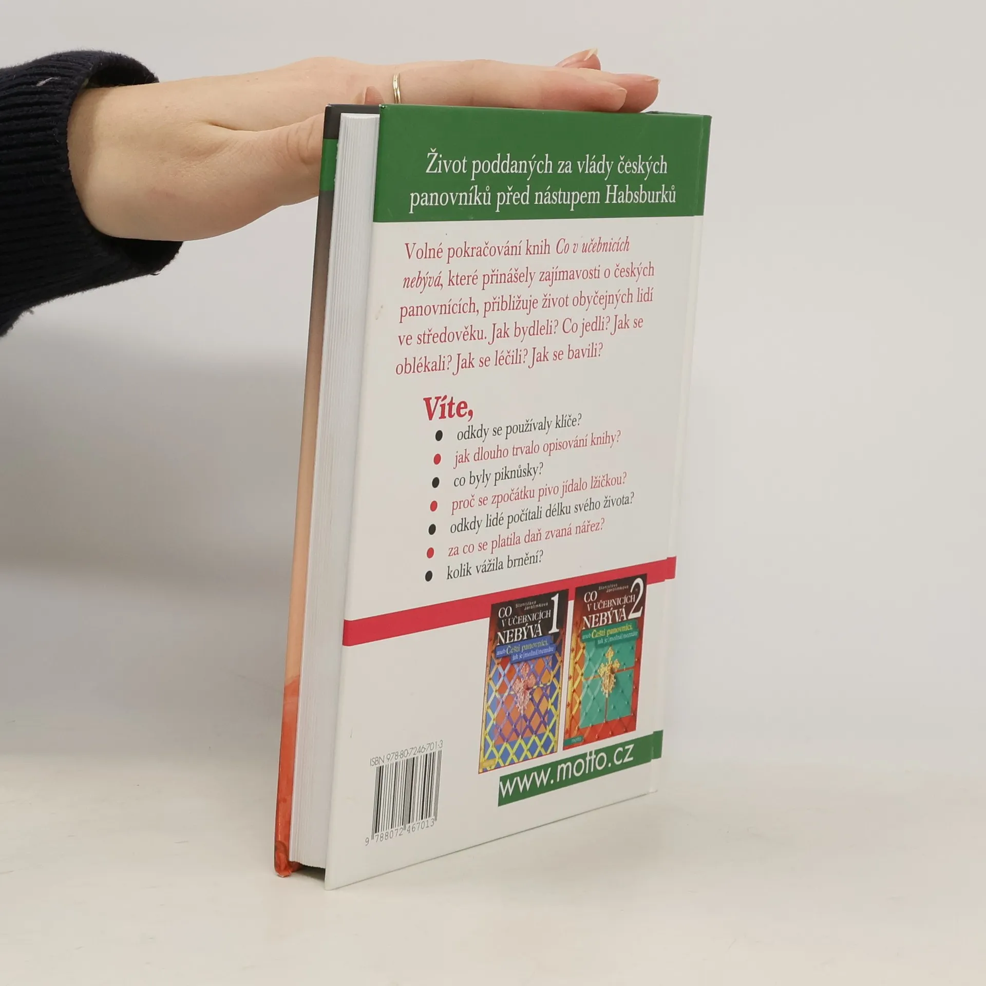 Život poddaných za vlády českých panovníků před nástupem Habsburků. Volné pokračování knih Co v učebnicích nebývá, které přinášely zajímavosti o českých panovnících, přibližuje život obyčejných lidí ve středověku. Jak bydleli? Co jedli? Jak se oblékali? Jak se léčili? Jak se bavili?