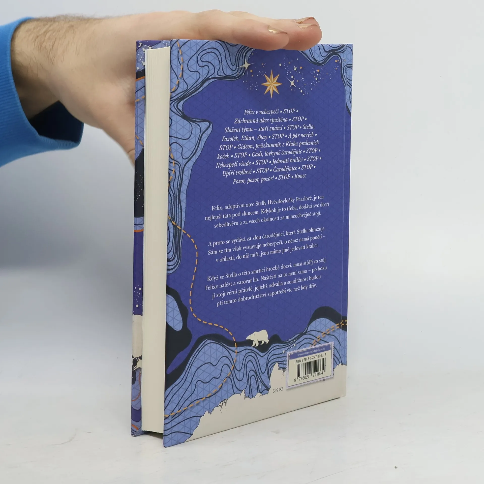 Ve druhém díle průzkumnické série se opět podíváme do mrazivé divočiny. Stella Hvězdovločka Pearlová už se nemůže dočkat, až vyrazí na další výpravu, pak se však přihodí něco zlého – zaútočí na ni zákeřná čarodějnice. Stellin otec Felix to tak nehodlá nechat, takže se vydá na Horu čarodějnic, zatímco dceru nechá doma. Nebyla by to ale Stella, kdyby záhy neshromáždila všechny své kamarády a nevypravila se tam také. V dalším průzkumnickém dobrodružství se opět setkáme se zdravotníkem Fazolkem, nafoukaným kouzelníkem Ethanem i zaříkávačem vlků Shayem. Tentokrát se k nim přidá rovněž Gideon, průzkumník z Klubu pralesních koček, a Cadi, lovkyně čarodějnic. Společně budou muset čelit hádavým houbám, zákeřným strašákům, létajícím žralokům, svítícím piraňám, nenasytným dýním, jedovatým králíkům i několika ježibabám. Dostihnou Felixe dřív, než se mu něco stane? Přemůžou čarodějnici, která Stelle usiluje o život? Z Hory čarodějnic se přece ještě nikdy žádný průzkumník nevrátil…
