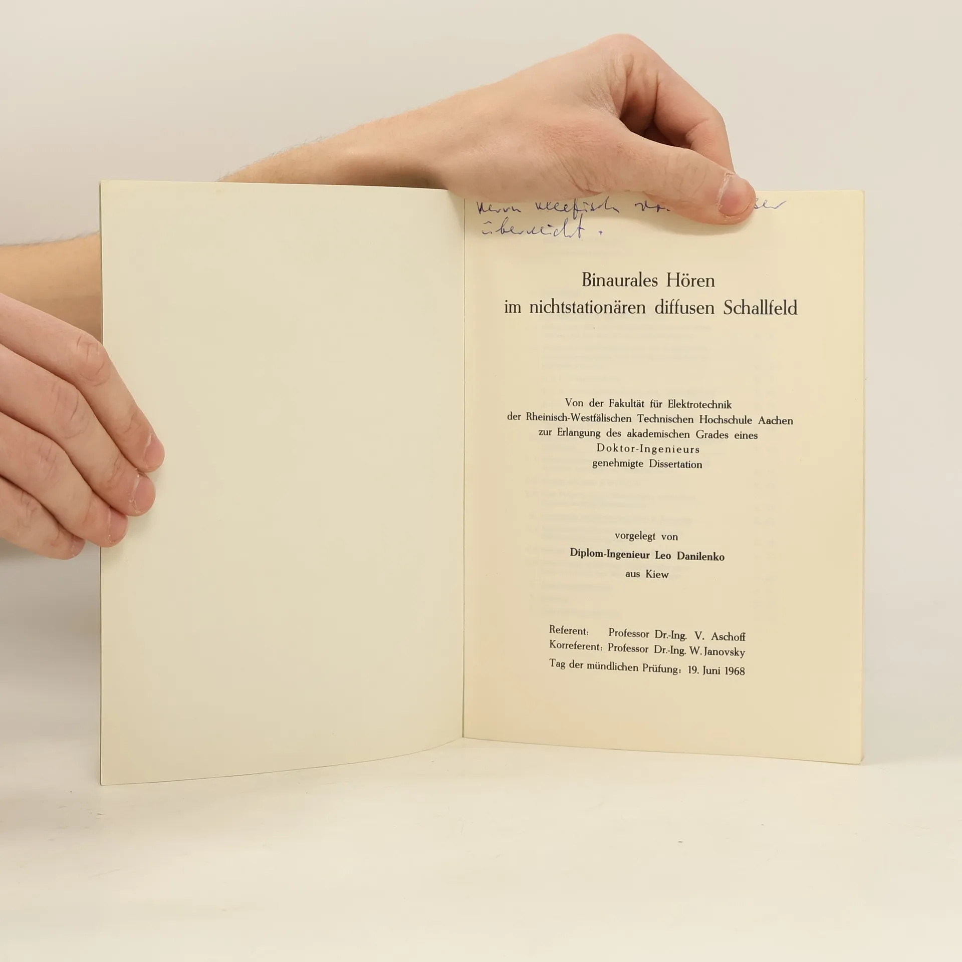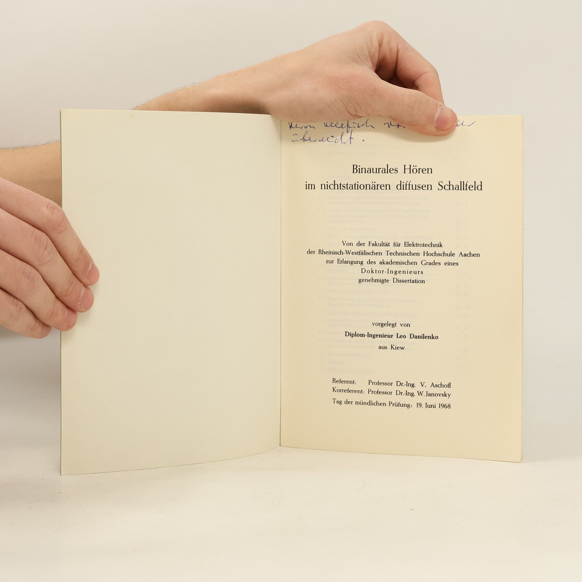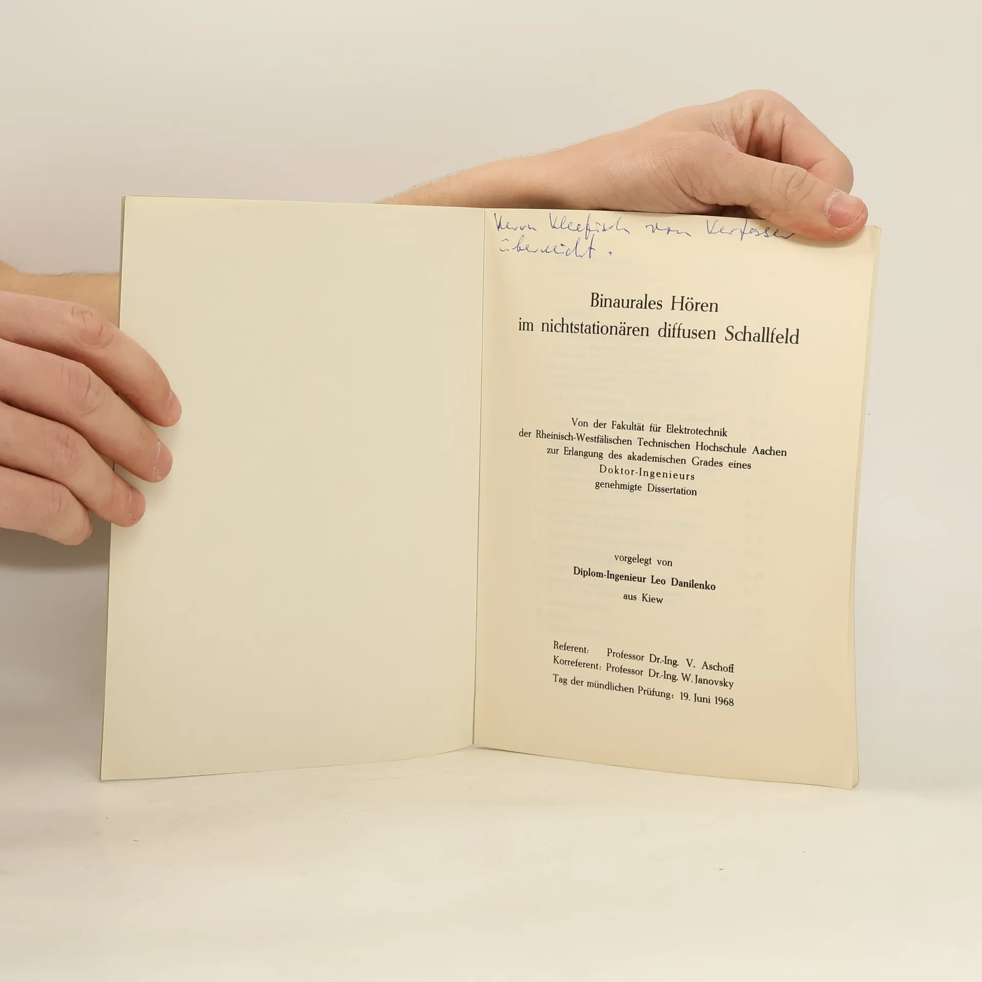Binaurales Hören im nichtstationären diffusen Schallfeld, Leo Danilenko