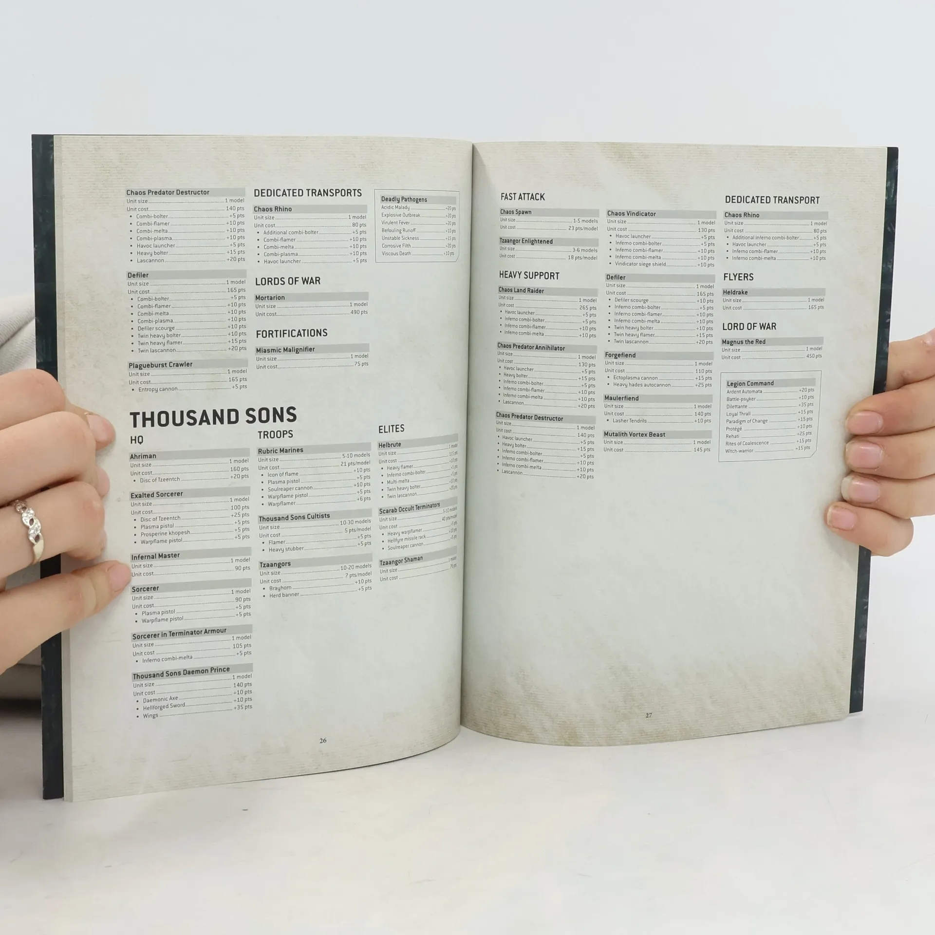 Inside this 96-page softback book, you'll - Two mission packs, comprising nine missions each for Incursion- and Strike Force-scale battles- Guidelines for setting up and playing a matched play or Grand Tournament-level competitive game, including suggested battlefield size, time limit and how best to determine secondary objectives- Updated secondary objectives- And more!In addition, you'll also find a separate 56-page book -- the Munitorum Field Manual Mk II -- containing all the latest matched play points updates.Please the points values featured in the Munitorum Field Manual 2021 MkII for the Thousand Sons and Grey Knights are incorrect due to a delay in the release of their codexes. Until these codexes are released later in 2021, you can download the updated points values for the Thousand Sons and Grey Knights from the PDF found in the downloads tab. These points values cater for all the units from both of these factions and are designed to be used alongside their current codexes until their new books arrive.
