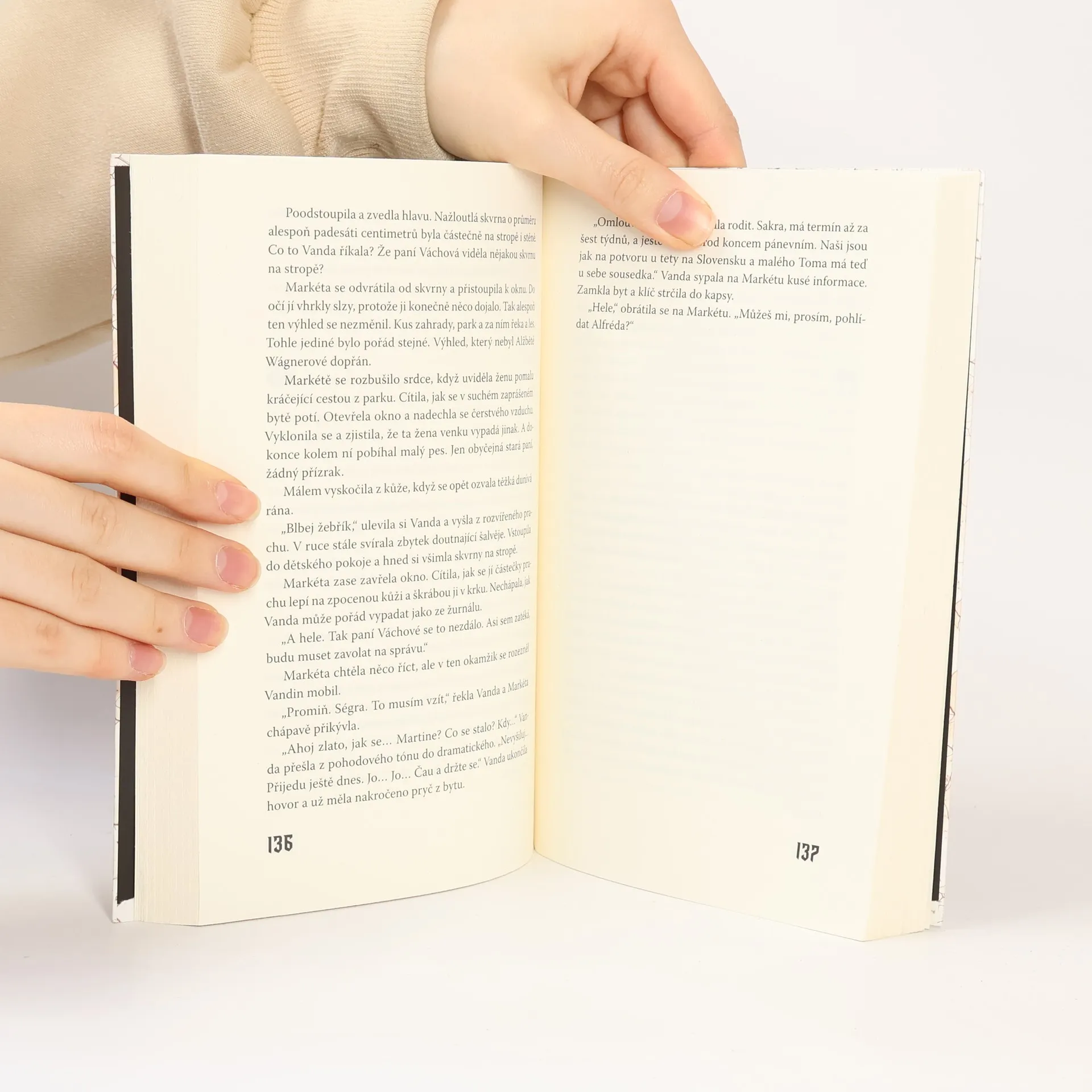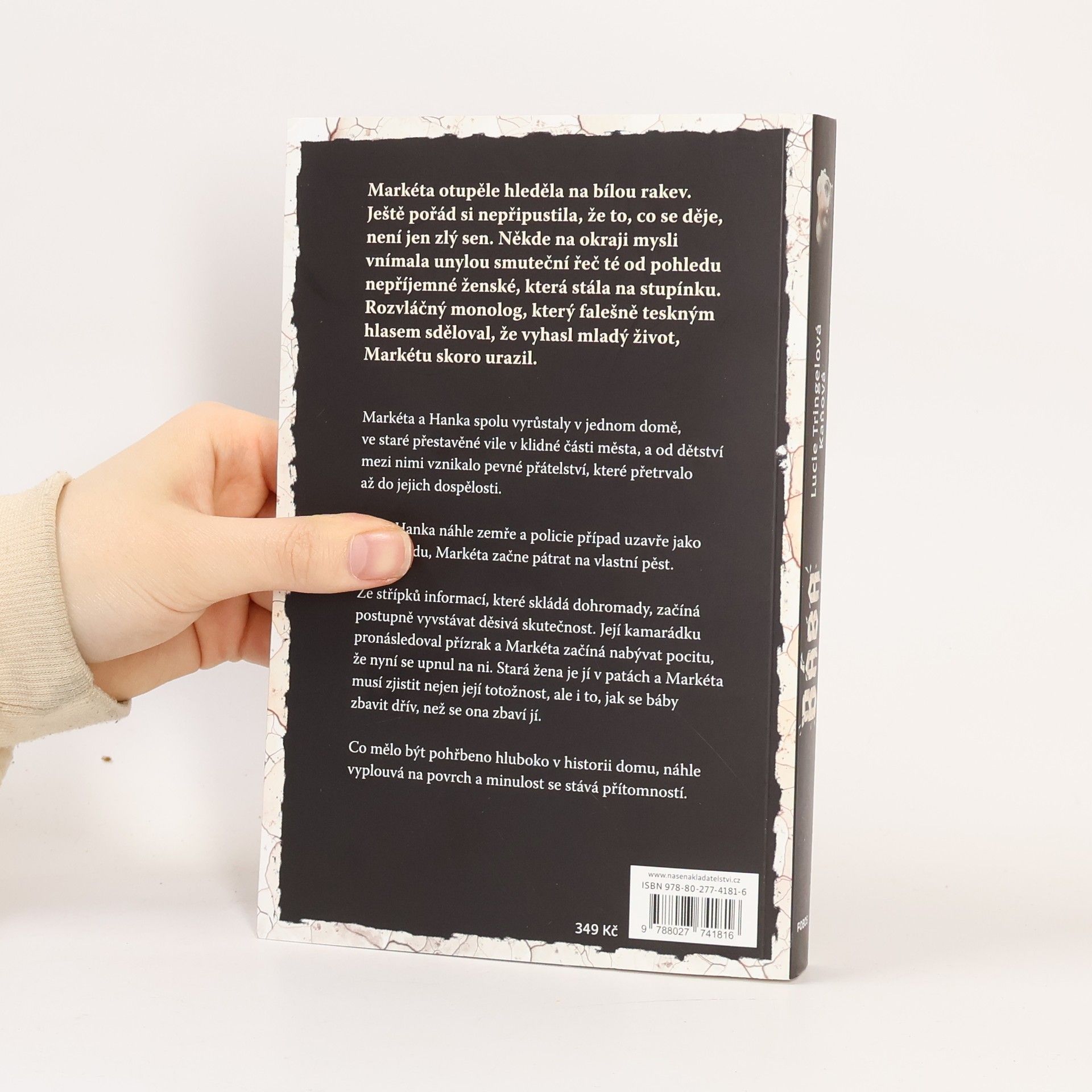 Markéta a Hanka spolu vyrůstaly v jednom domě, ve staré přestavěné vile v klidné části města, a od dětství mezi nimi vznikalo pevné přátelství, které přetrvalo až do jejich dospělosti. Když Hanka náhle zemře a policie případ uzavře jako sebevraždu, Markéta začne pátrat na vlastní pěst. Ze střípků informací, které skládá dohromady, začíná postupně vyvstávat děsivá skutečnost. Její kamarádku pronásledoval přízrak a Markéta začíná nabývat pocitu, že nyní se upnul na ni. Stará žena je jí v patách a Markéta musí zjistit nejen její totožnost, ale i to, jak se báby zbavit dřív, než se ona zbaví jí. Co mělo být pohřbeno hluboko v historii domu, náhle vyplouvá na povrch a minulost se stává přítomností.