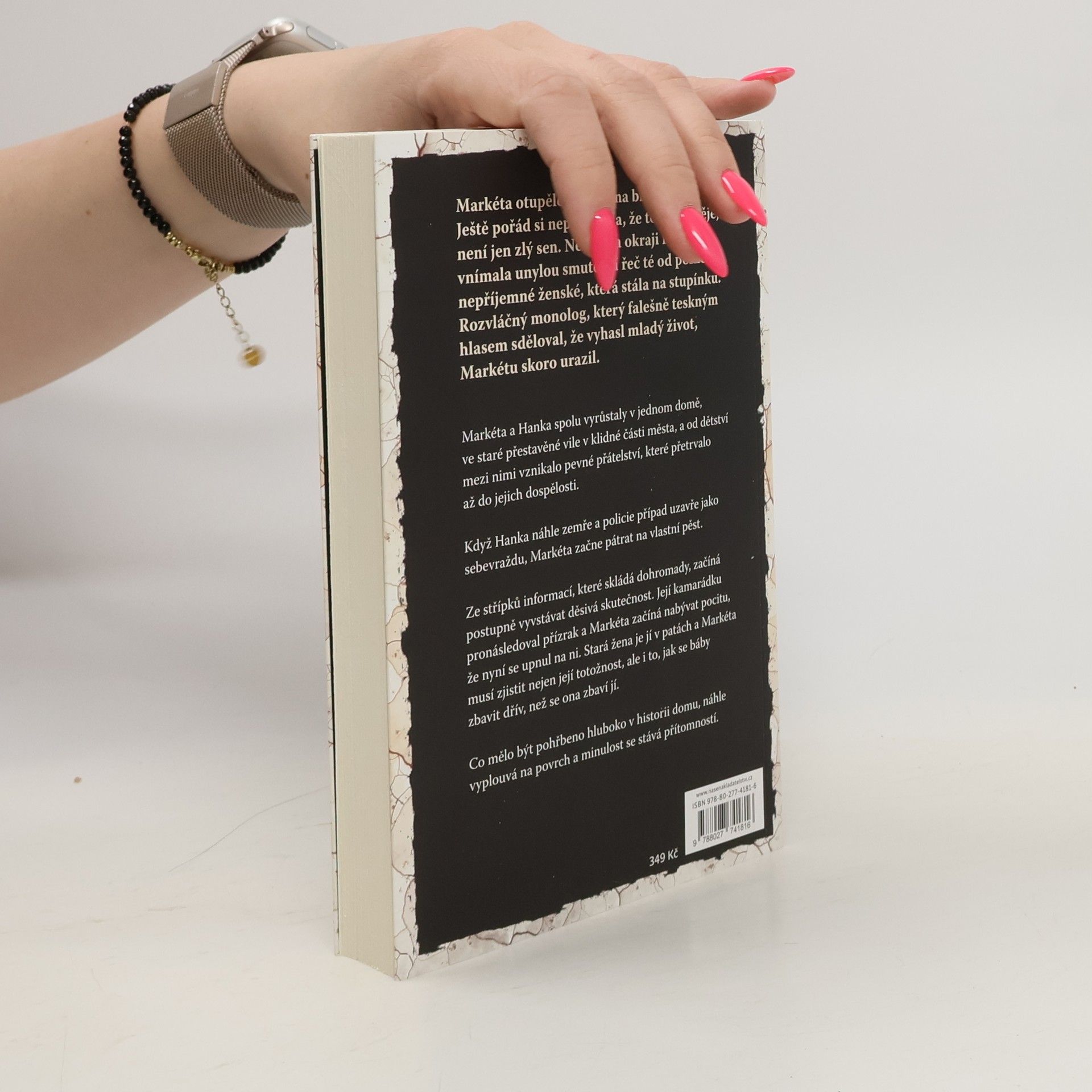 Markéta a Hanka spolu vyrůstaly v jednom domě, ve staré přestavěné vile v klidné části města, a od dětství mezi nimi vznikalo pevné přátelství, které přetrvalo až do jejich dospělosti. Když Hanka náhle zemře a policie případ uzavře jako sebevraždu, Markéta začne pátrat na vlastní pěst. Ze střípků informací, které skládá dohromady, začíná postupně vyvstávat děsivá skutečnost. Její kamarádku pronásledoval přízrak a Markéta začíná nabývat pocitu, že nyní se upnul na ni. Stará žena je jí v patách a Markéta musí zjistit nejen její totožnost, ale i to, jak se báby zbavit dřív, než se ona zbaví jí. Co mělo být pohřbeno hluboko v historii domu, náhle vyplouvá na povrch a minulost se stává přítomností.