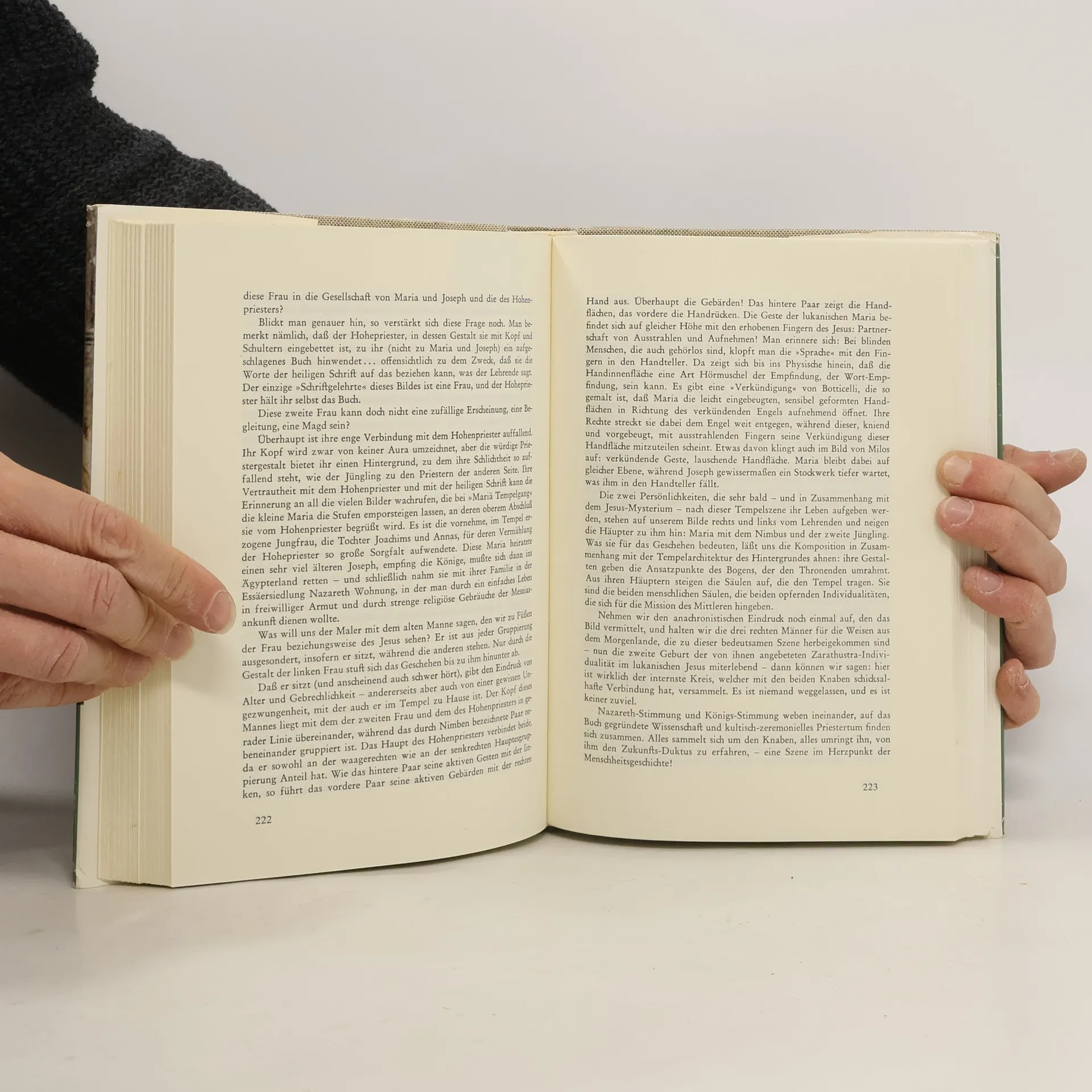 Zahlreiche Künstler zeigen in Bildern der Anbetung zwei Knaben, andere in Marienleben zwei Mariengestalten oder eine Madonna mit zwei und drei Knaben. Auch der zwölfjährige Jesus im Tempel wird öfter von einem zweiten Knaben begleitet. Liegt diesen Darstellungen ein Wissen zugrunde, das heute größtenteils verborgen ist? Die Tatsache von Geburt und Kindheit der zwei Jesusknaben ist eines der größten offenbaren Geheimnisse der Menschheitsgeschichte. Als Rudolf Steiner 1909 darauf hinwies, wurde er kaum beachtet. Inzwischen haben die Qumrantexte, aber auch eine exaktere Erforschung apokrypher Schriften gezeigt, dass im jüdischen Volk eine doppelte Messias-Erwartung vorhanden war. Das Überraschende ist, dass die Anschauung von zwei Jesusknaben auch in der bildenden Kunst zum Ausdruck gekommen ist. Hella Krause-Zimmer kann an zahlreichen Bildern zeigen, dass sich hier eine bestimmte, durch Jahrhunderte durchgehaltene Tradition niedergeschlagen hat: ein Wissen um die zwei Jesusknaben, die zwei verschiedenen Familien zugehören.