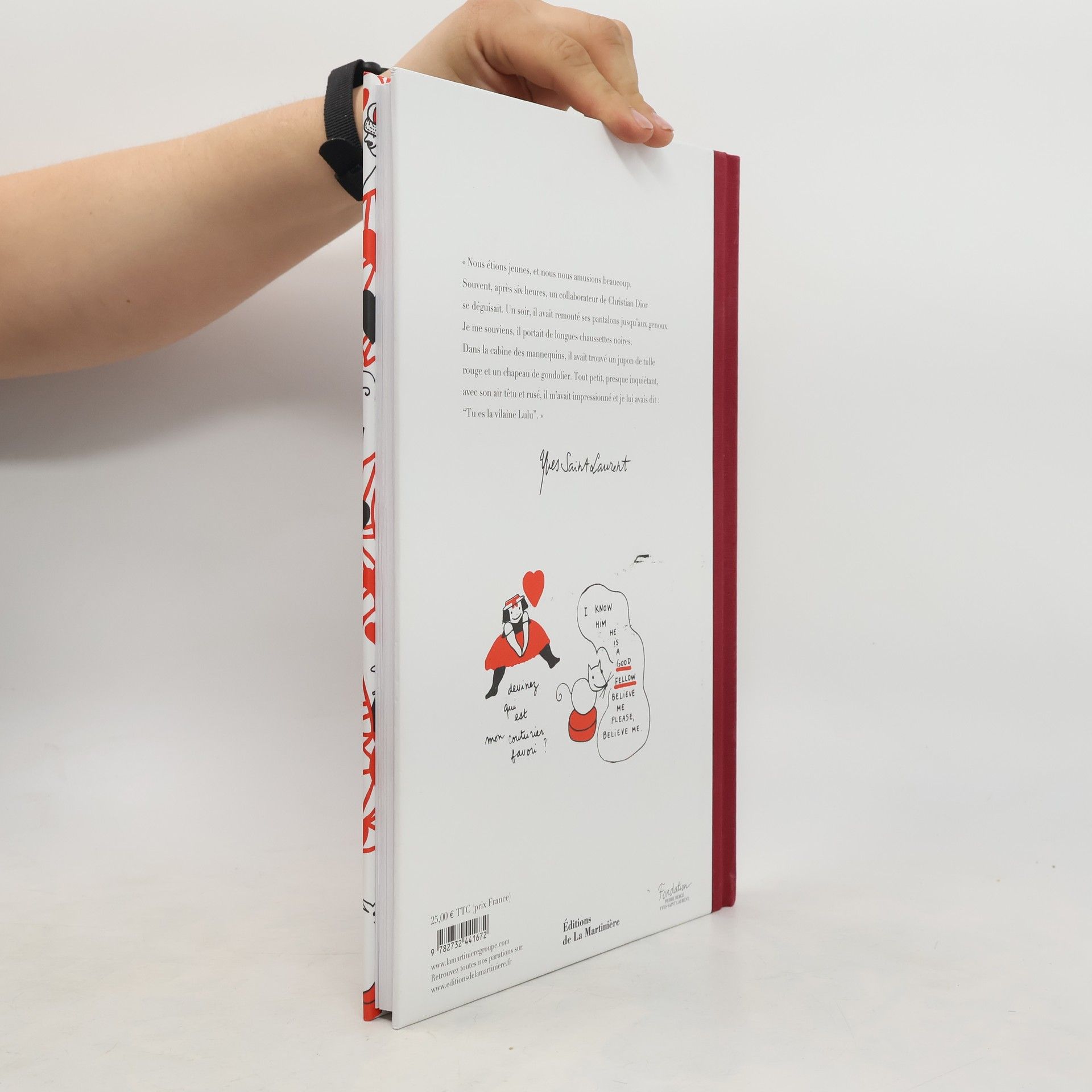 " Nous étions jeunes, et nous nous amusions beaucoup. Souvent, après six heures, un collaborateur de Christian Dior se déguisait. Un soir, il avait remonté ses pantalons jusqu'aux genoux. Je me souviens, il portait de longues chaussettes noires. Dans la cabine des mannequins, il avait trouvé un jupon de tulle rouge et un chapeau de gondolier. Tout petit, presque inquiétant, avec son air têtu et rusé, il m'avait impressionné et je lui avais dit : "Tu es la vilaine Lulu". "