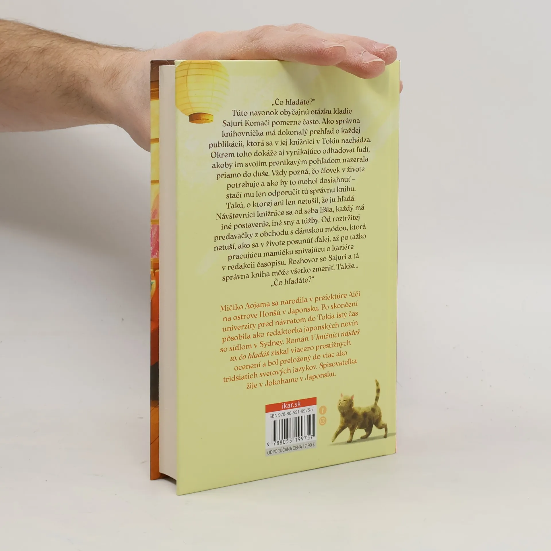 Správna kniha dokáže zmeniť život „Čo hľadáte?“ Túto navonok obyčajnú otázku kladie Sajuri Komači pomerne často. Ako správna knihovníčka má dokonalý prehľad o každej knihe, ktorá sa v jej knižnici v Tokiu nachádza. Okrem toho dokáže aj vynikajúco odhadovať ľudí, akoby im svojím prenikavým pohľadom nazerala priamo do duše. Vždy pozná, čo človek v živote potrebuje a ako by to mohol dosiahnuť – stačí mu len odporučiť tú správnu knihu. Takú, o ktorej ani len netušil, že ju hľadá. Návštevníci knižnice sa od seba líšia, každý má iné postavenie, iné sny a túžby. Od roztržitej predavačky z obchodu s dámskou módou, ktorá netuší, ako sa v živote posunúť ďalej, až po ťažko pracujúcu mamičku snívajúcu o kariére v redakcii časopisu. Rozhovor so Sajuri a tá správna kniha môže všetko zmeniť. Takže... „Čo hľadáte?“