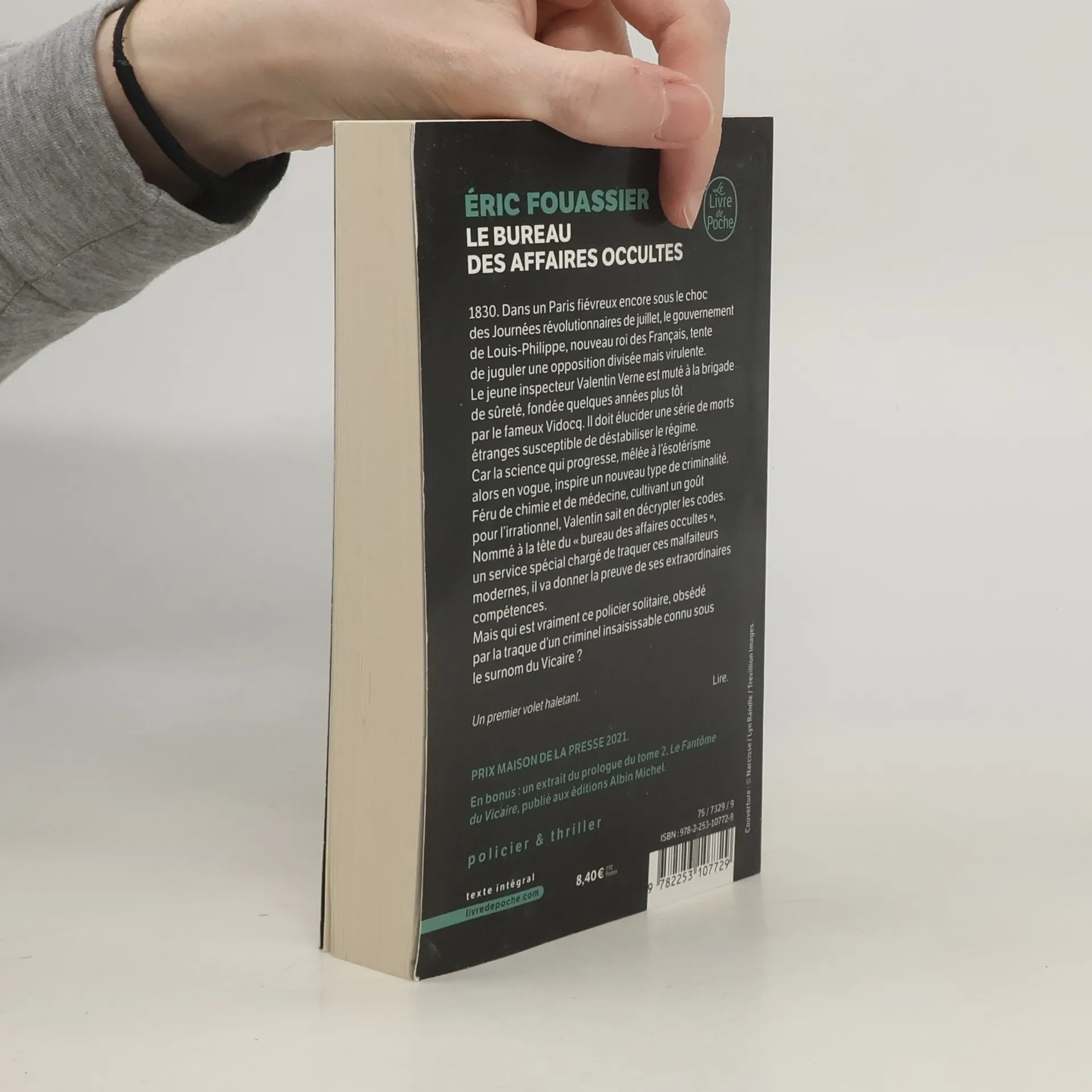 1830. Dans un Paris fiévreux encore sous le choc des Journées révolutionnaires de juillet, le gouvernement de Louis-Philippe, nouveau roi des Français, tente de juguler une opposition divisée mais virulente. Le jeune inspecteur Valentin Verne est muté à la brigade de Sûreté fondée quelques années plus tôt par le fameux Vidocq. Il doit élucider une série de morts étranges susceptible de déstabiliser le régime. Car la science qui progresse, mêlée à l'ésotérisme alors en vogue, inspire un nouveau type de criminalité. Féru de chimie et de médecine, cultivant un goût pour l'irrationnel, Valentin sait en décrypter les codes. Nommé à la tête du « bureau des affaires occultes », un service spécial chargé de traquer ces malfaiteurs modernes, il va donner la preuve de ses extraordinaires compétences. Mais qui est vraiment ce policier solitaire, obsédé par la traque d'un criminel insaisissable connu sous le seul surnom du Vicaire ?