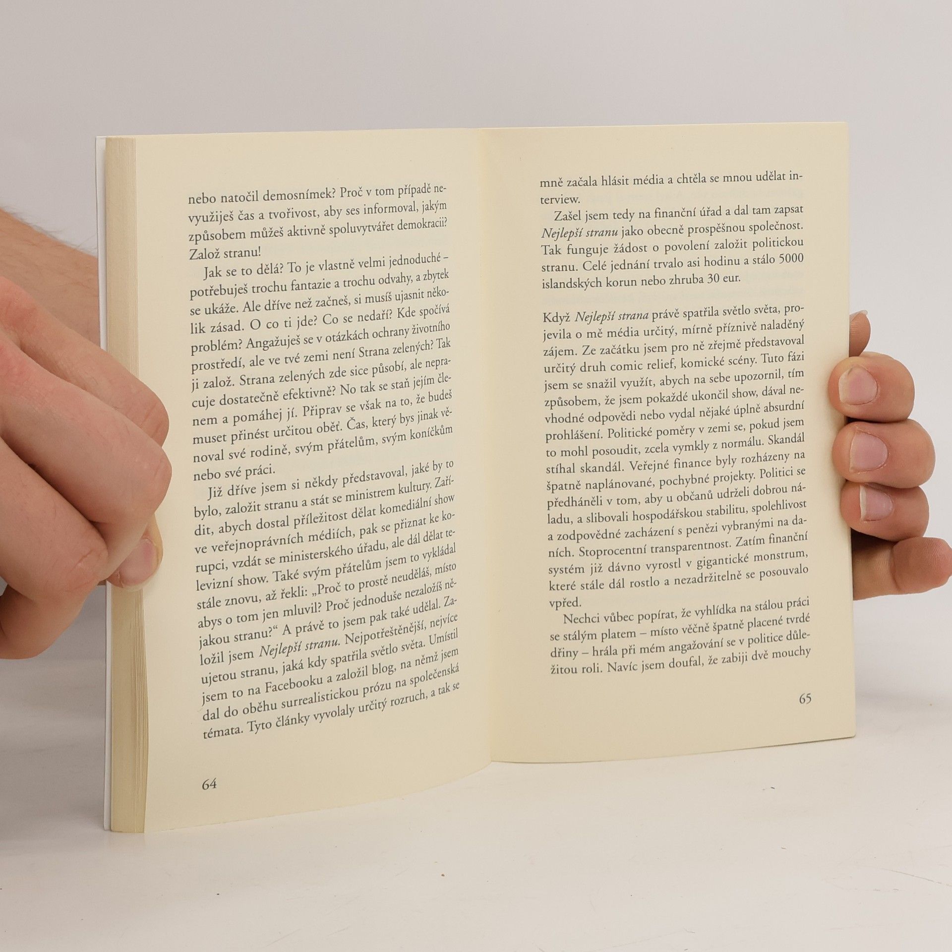 Podtitul: a chtěl změnit svět poté, co jsem odešel od Björk Jón Gnarr nikdy nedokončil školu, pracoval jako dělník, taxikář a později komik. Přesto se stal starostou hlavního města Islandu. To je jistě přinejmenším zajímavý materiál na knihu o cestě tohoto zdánlivě obyčejného muže na výsluní politiky. Jón Gnarr nás ve vzpomínkách zavede do svého dětství, podělí se o radikální volební program své Nejlepší strany a povypráví o zákulisních intrikách městské rady. Alespoň trochu nám tak odhalí záhadný islandský národ a jeho povahu.