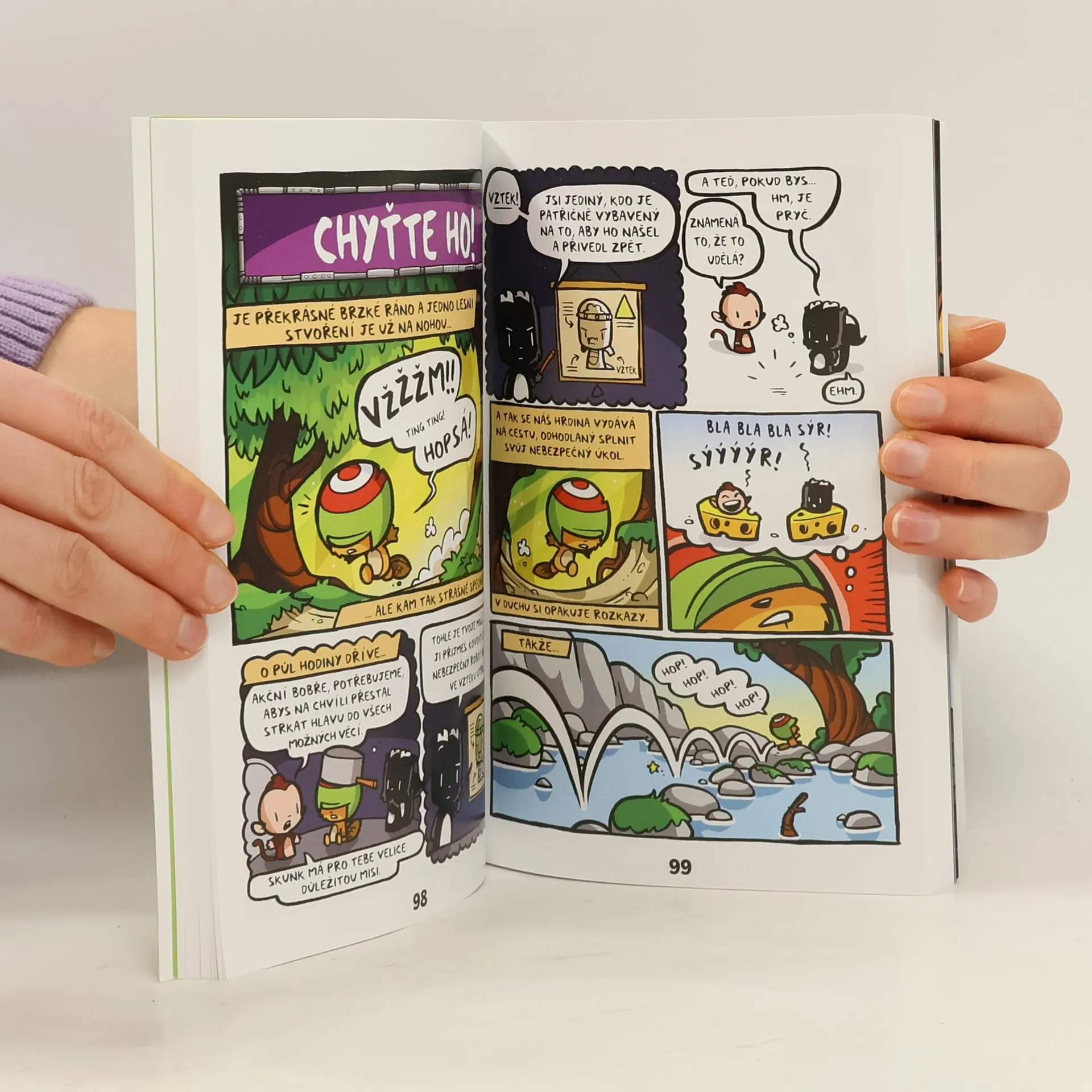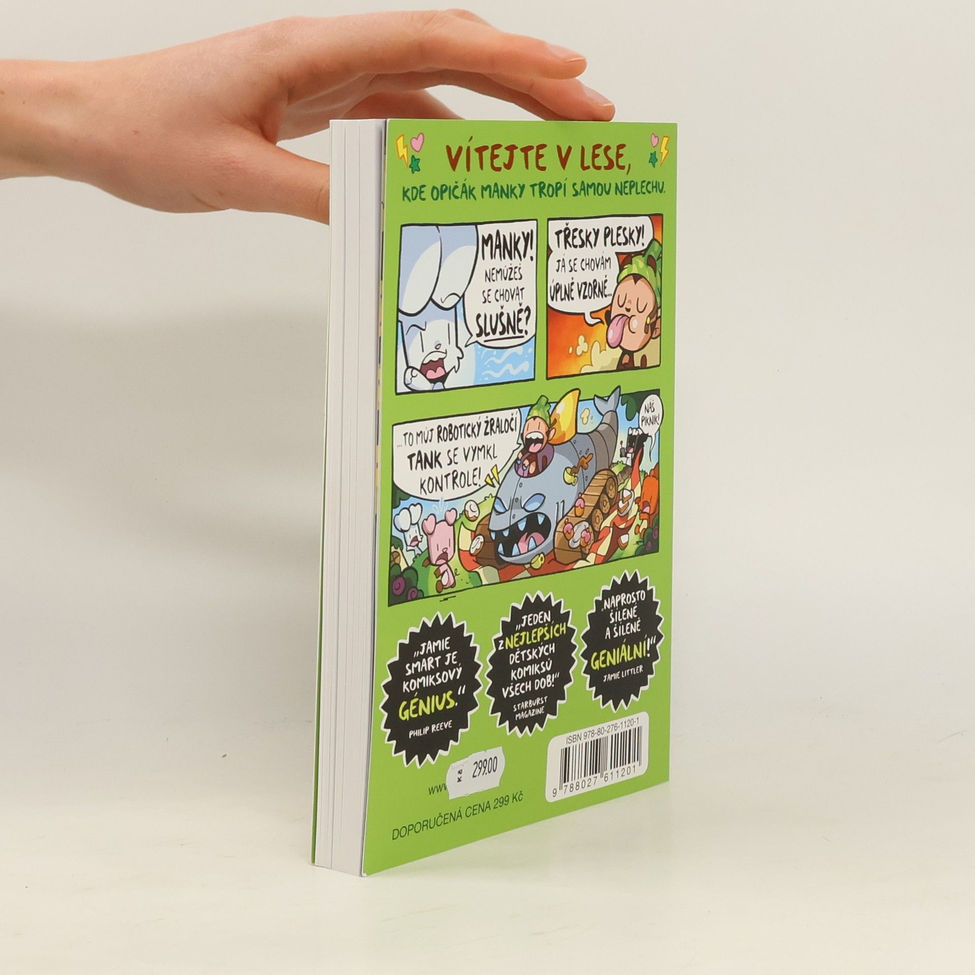 Jamie Smart je podle všech komiksový génius. Sedí si doma v Anglii u počítače a vymýšlí jeden příběh za druhým. Prý se občas ztratí na procházce se psem, ale ztráta času to není. Než se zase najde, má v hlavě nový příběh. Jeho bílý králík Bany to nemá lehké. Do lesa, kde si v pohodičce žije i se svými kamarády, se mu nasáčkoval opičák Manky. Havaroval tam s raketou a má v úmyslu si zde založit svůj nový domov - Opičánii. Prohlásí, že Bany musí ze svého domova prostě vypadnout. A v poklidném lese je najednou naprostý chaos. Souboj králíka s opičákem posedlým technikou a různými přístroji je plný dobrodružství, napětí, překvapení, zábavy a legrace (hlavně z pohledu potrhlého Mankyho), ale Banymu občas fakt není co závidět. Ještě že mu pomáhají jeho kamarádi - prasátko a veverka. Ztřeštěných akcí se účastní i vynálezce skunk s bujnou fantazií, akční bobr, lišák a kovový Steve. Barevné a dynamické kresby plné zvratů s vtipnými zápletkami jistě potěší všechny fandy komiksu a humoru. Ale pozor, příběhy jsou návykové! Naštěstí bude pokračování…